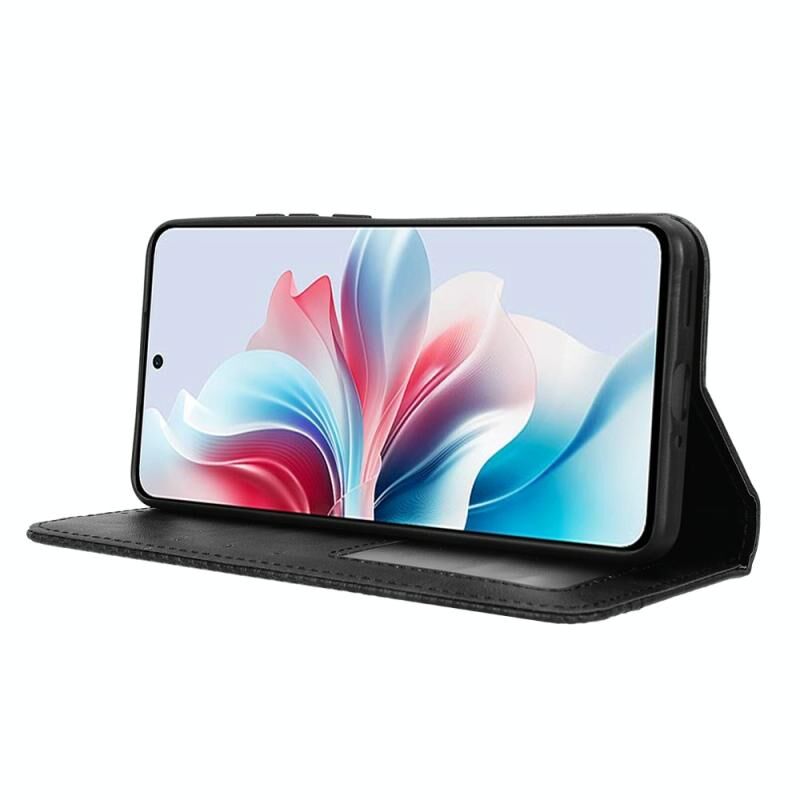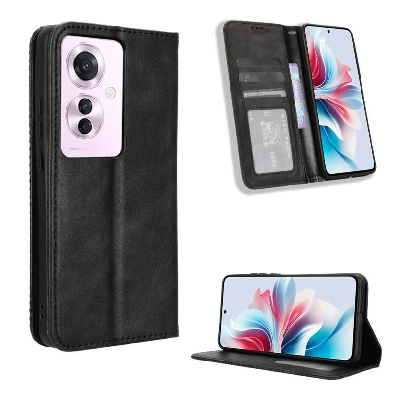 Για OPPO Reno11 PJH110 Μαγνητική πόρπη ρετρό υφή δερμάτινη θήκη τηλεφώνου (Μαύρο)