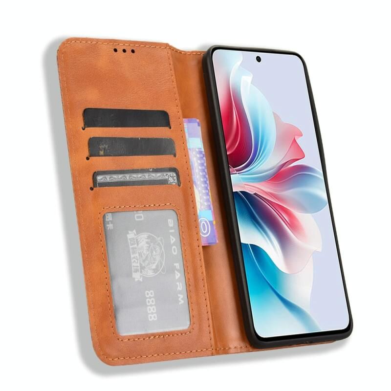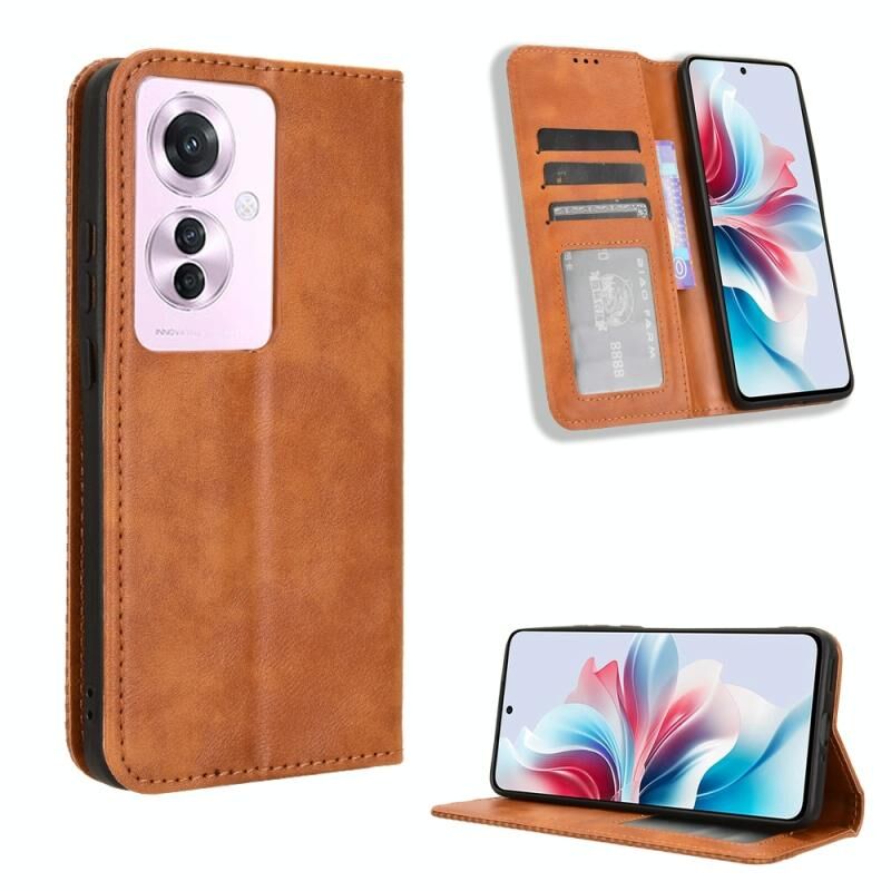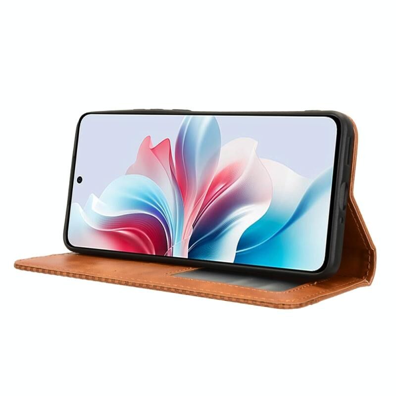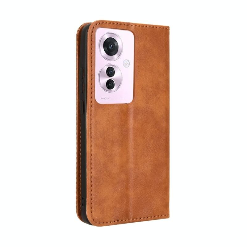 Για OPPO Reno11 PJH110 Μαγνητική πόρπη ρετρό υφή δερμάτινη θήκη τηλεφώνου (Καφέ)