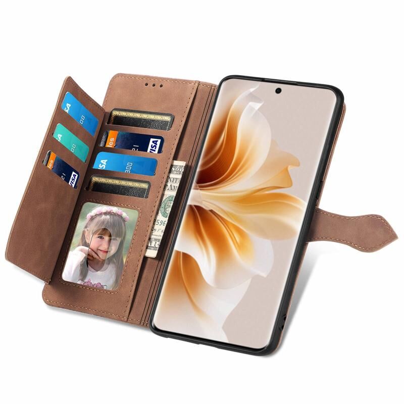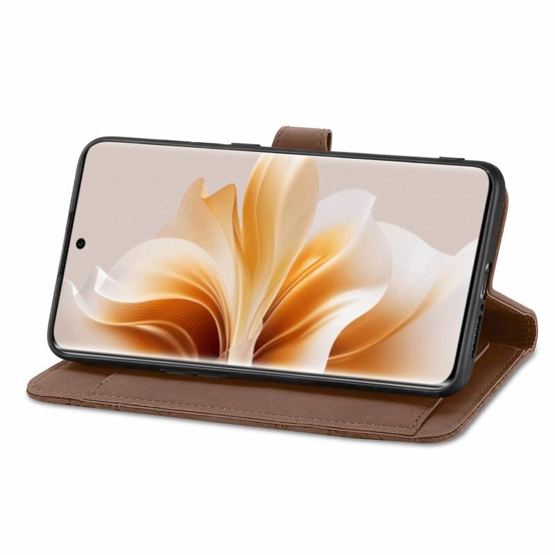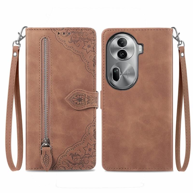 Για OPPO Reno11 Pro 5G ανάγλυφο λουλούδι φερμουάρ δερμάτινη θήκη τηλεφώνου (καφέ)