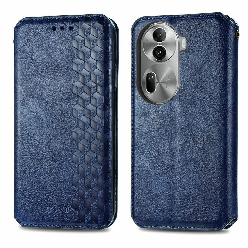 For OPPO Reno11 Pro 5G EU Cubic Grid Pressed Magnetic Leather Phone Case(Blue)
