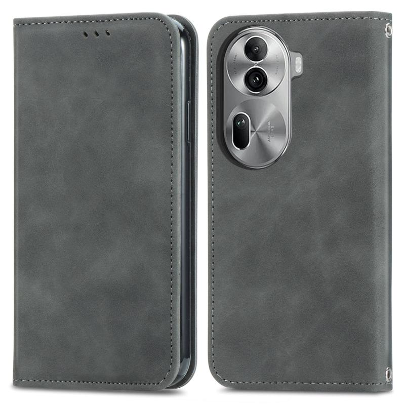 Για OPPO Reno11 Pro 5G EU Δερμάτινη Θήκη Flip με Μαγνήτη & Απαλή Υφή (Γκρι)