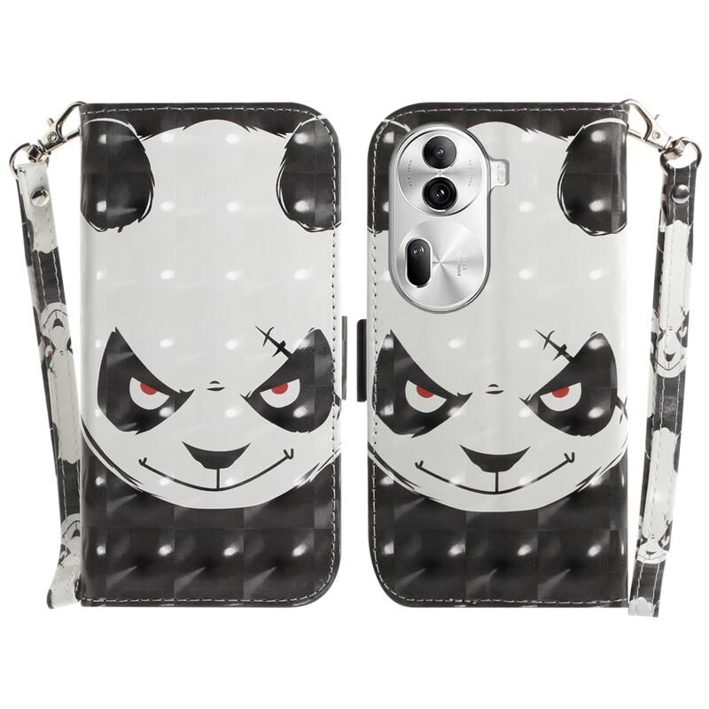 Θήκη τηλεφώνου από δέρμα με οριζόντια αναδίπλωση και έγχρωμο 3D σχέδιο για OPPO Reno11 Pro 5G Global (Οργισμένη Αρκούδα)