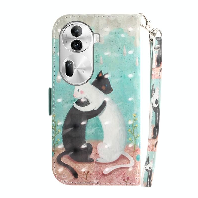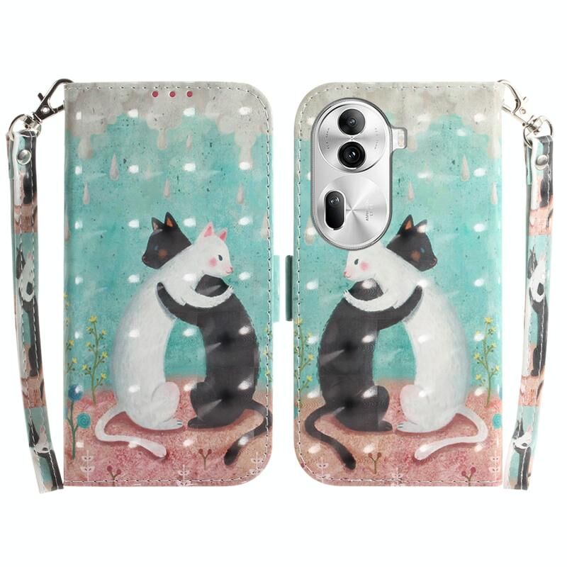 Θήκη τηλεφώνου από δέρμα με οριζόντια αναδίπλωση και έγχρωμο 3D σχέδιο για OPPO Reno11 Pro 5G Global (Μαύρη Λευκή Γάτα)