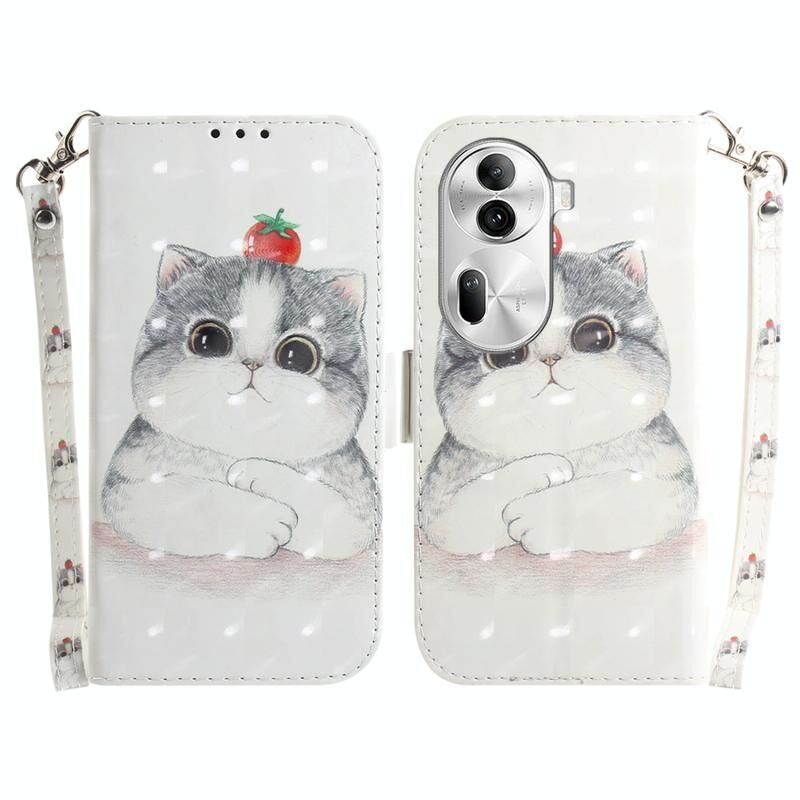Θήκη τηλεφώνου από δέρμα με οριζόντια αναδίπλωση και έγχρωμο 3D σχέδιο για OPPO Reno11 Pro 5G Global (Χαριτωμένη Γάτα)