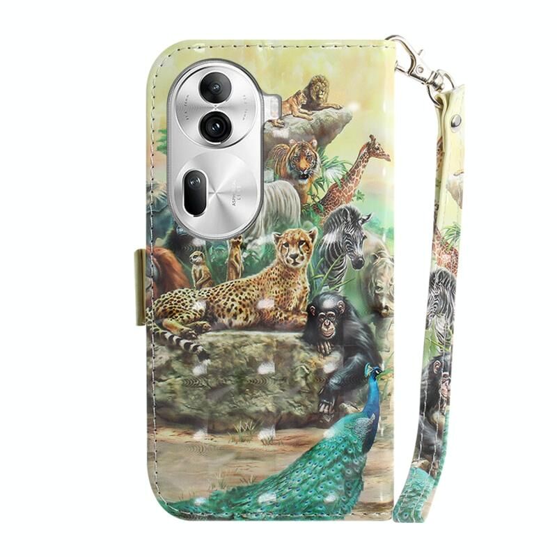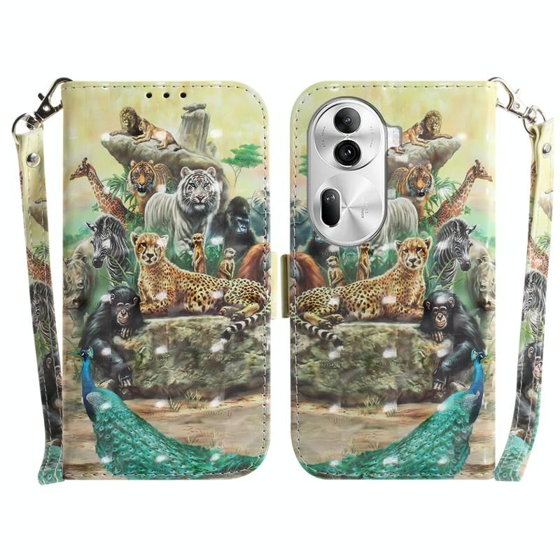 Θήκη τηλεφώνου από δέρμα με οριζόντια αναδίπλωση και έγχρωμο 3D σχέδιο για OPPO Reno11 Pro 5G Global (Ζωολογικός κήπος)