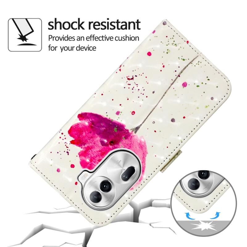 Θήκη τηλεφώνου από δέρμα με οριζόντια αναδίπλωση και τρισδιάστατη ζωγραφική για OPPO Reno11 Pro 5G Global (Χρυσή Πεταλούδα)