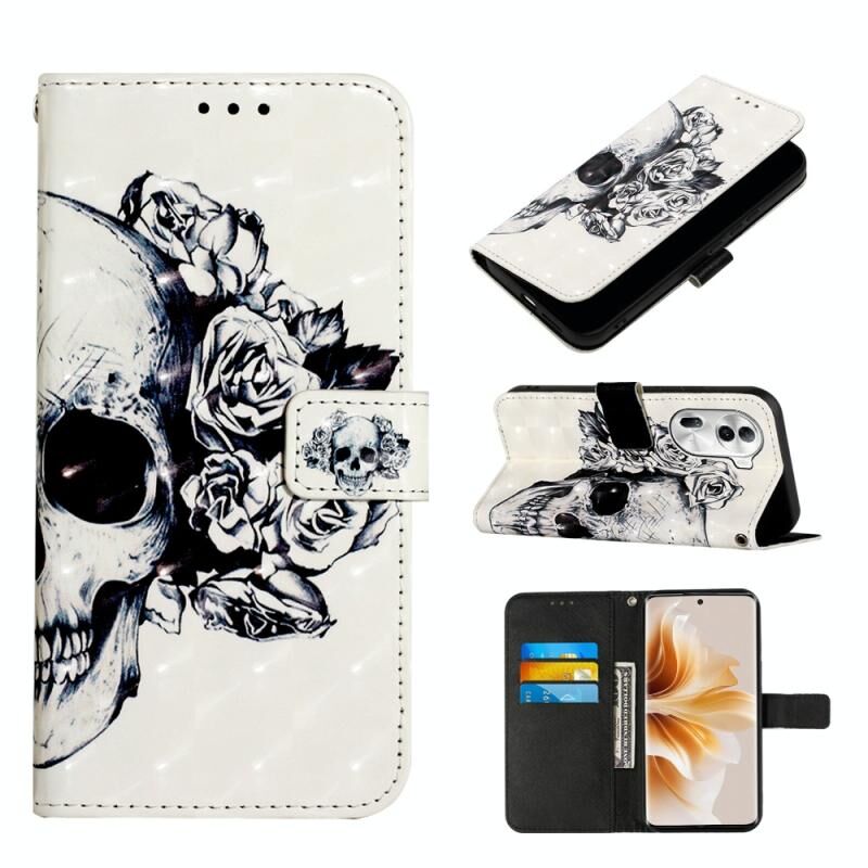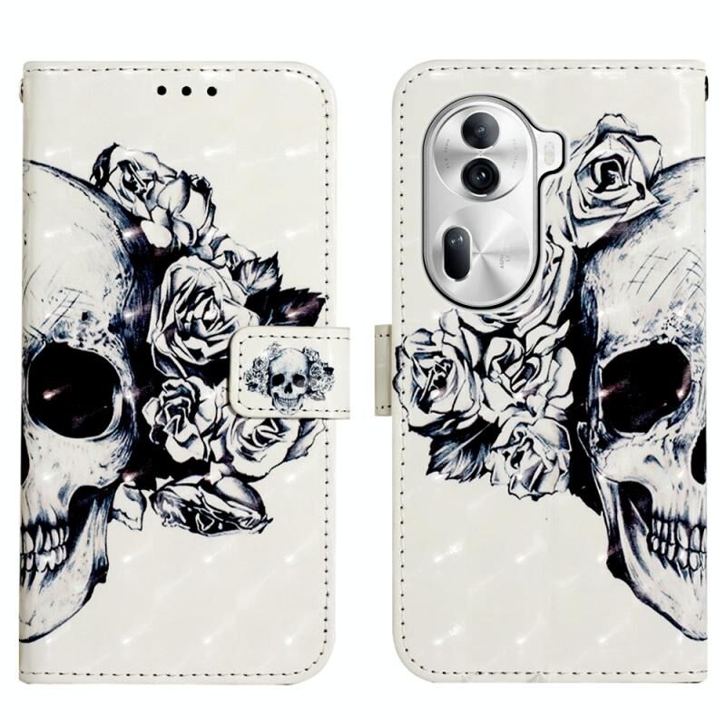 Θήκη τηλεφώνου από δέρμα με οριζόντια αναδίπλωση και τρισδιάστατη ζωγραφική για OPPO Reno11 Pro 5G Global (Κρανίο)