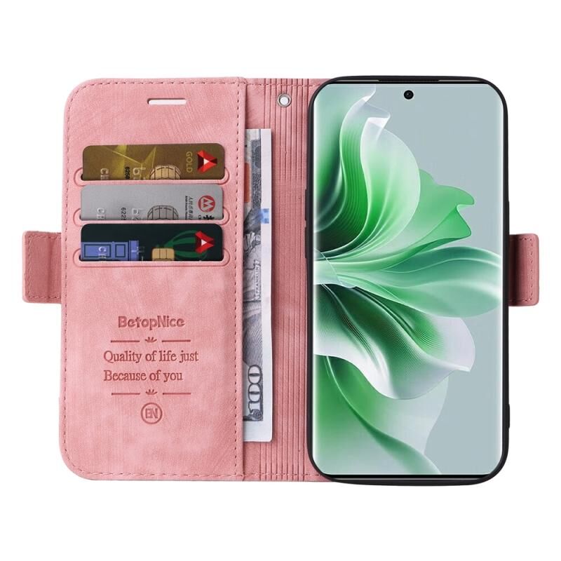 Για OPPO Reno11 Pro 5G Global BETOPNICE Διπλής όψης πόρπη δερμάτινη θήκη τηλεφώνου (ροζ) (ρόζ)