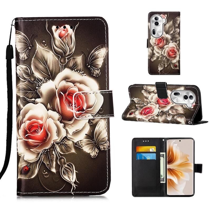 Θήκη τηλεφώνου από δέρμα με απλή ύφανση και πολύχρωμο σχέδιο για OPPO Reno11 Pro 5G (Τίγρη σε ασπρόμαυρο)
