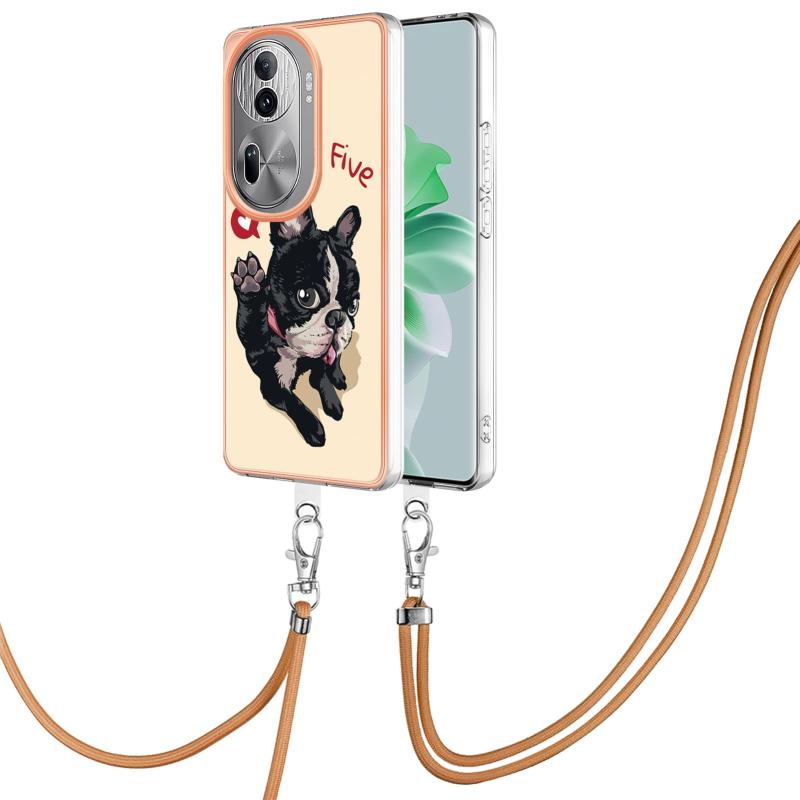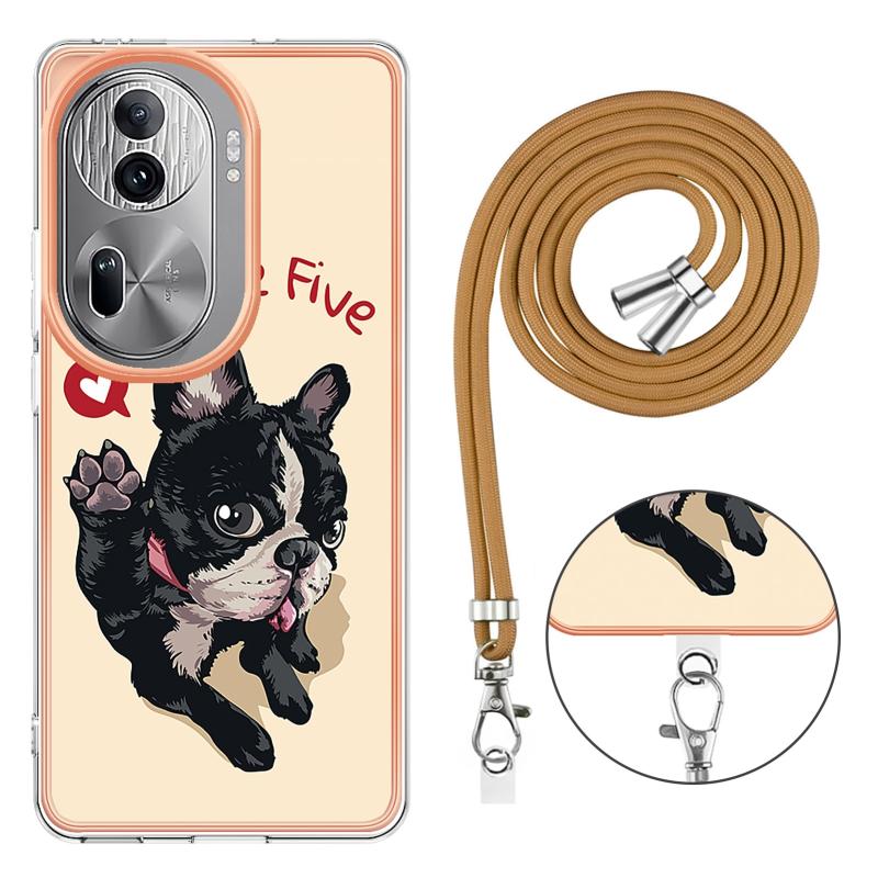 For OPPO Reno11 Pro 5G Global Electroplating Dual-side IMD Phone Case with Lanyard(Lucky Dog)