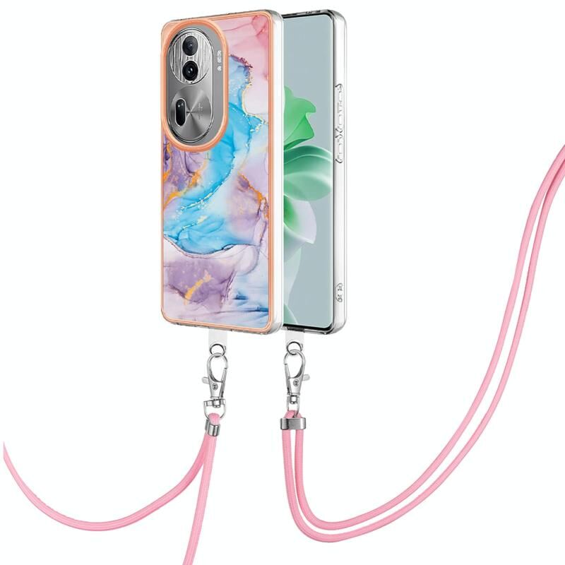 Θήκη τηλεφώνου OPPO Reno11 Pro 5G Global Electroplating IMD TPU με κορδόνι (Μπλε Μάρμαρο)