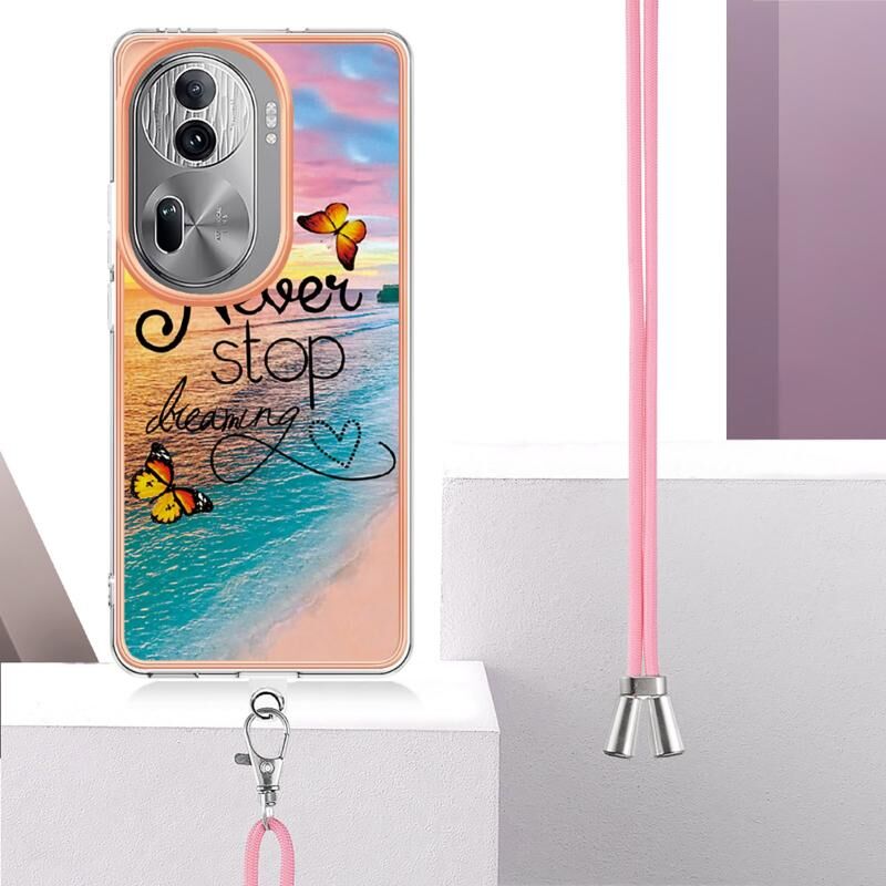 Θήκη τηλεφώνου OPPO Reno11 Pro 5G Global Electroplating IMD TPU με κορδόνι (Dream Butterfly)