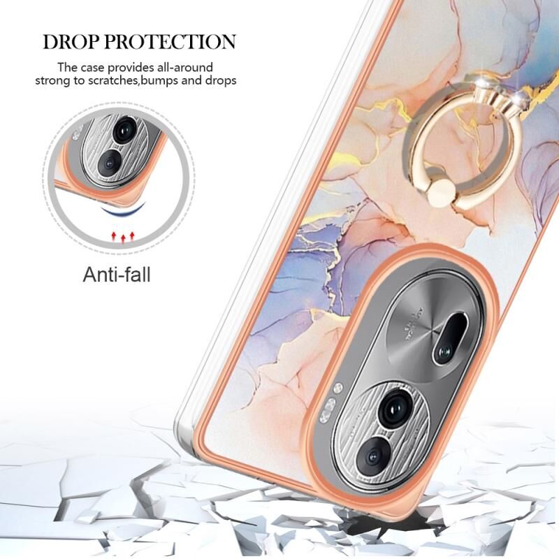 Θήκη τηλεφώνου OPPO Reno11 Pro 5G Global Electroplating IMD TPU με Δαχτυλίδι (Λευκό Μάρμαρο)