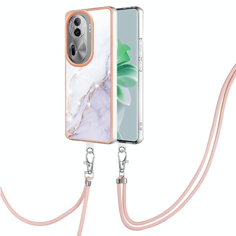 Θήκη τηλεφώνου για OPPO Reno11 Pro 5G Global Electroplating Marble IMD διπλής όψης με κορδόνι (Μωβ 001)