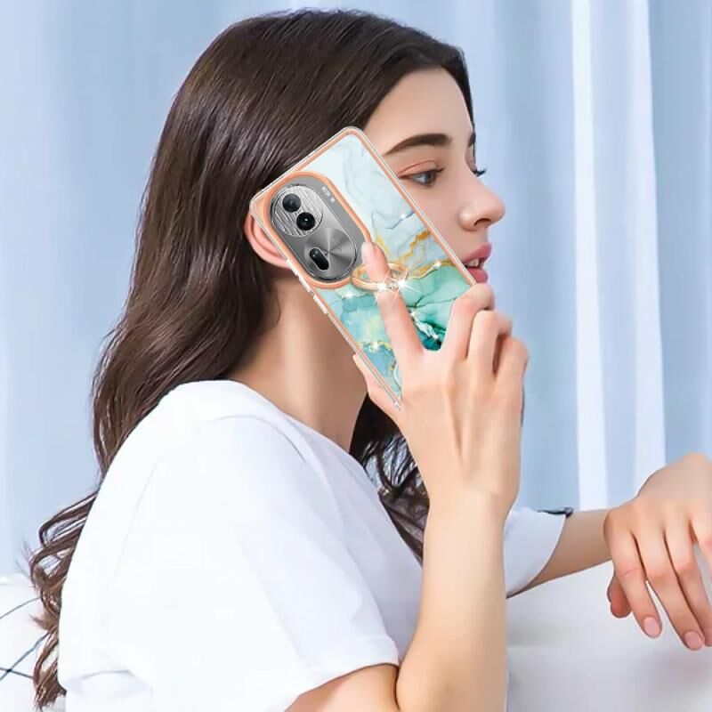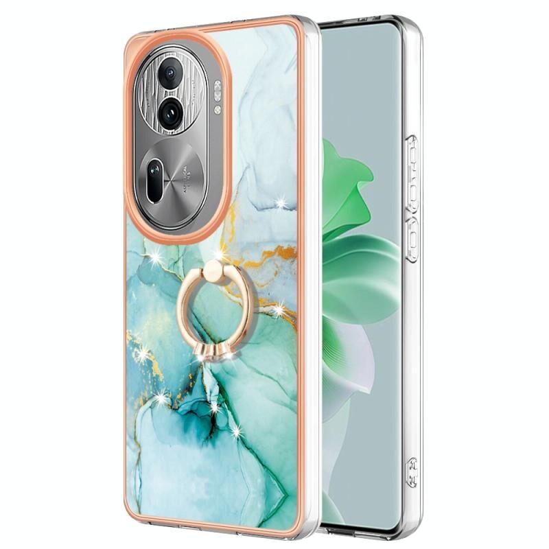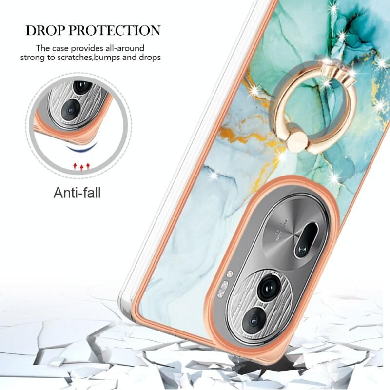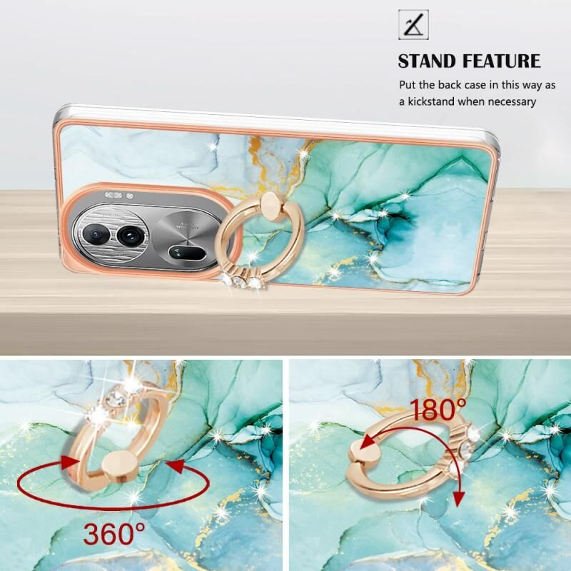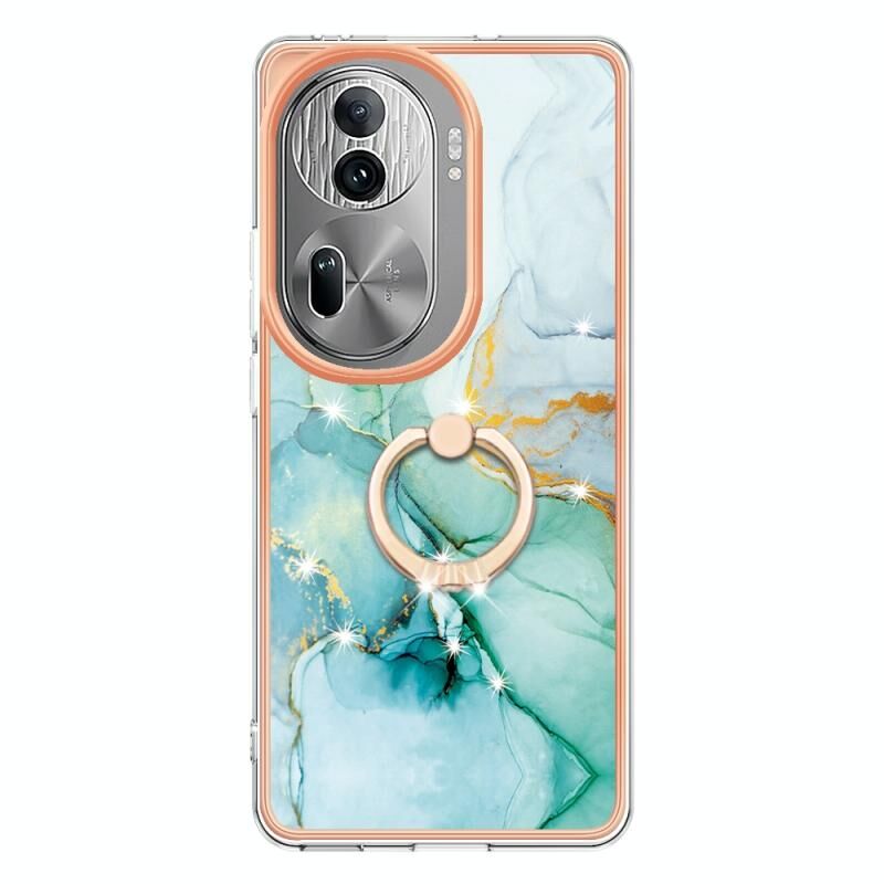 Θήκη κινητού τηλεφώνου OPPO Reno11 Pro 5G Global Electroplating Marble IMD TPU με δακτύλιο στήριξης (Πράσινο 003)