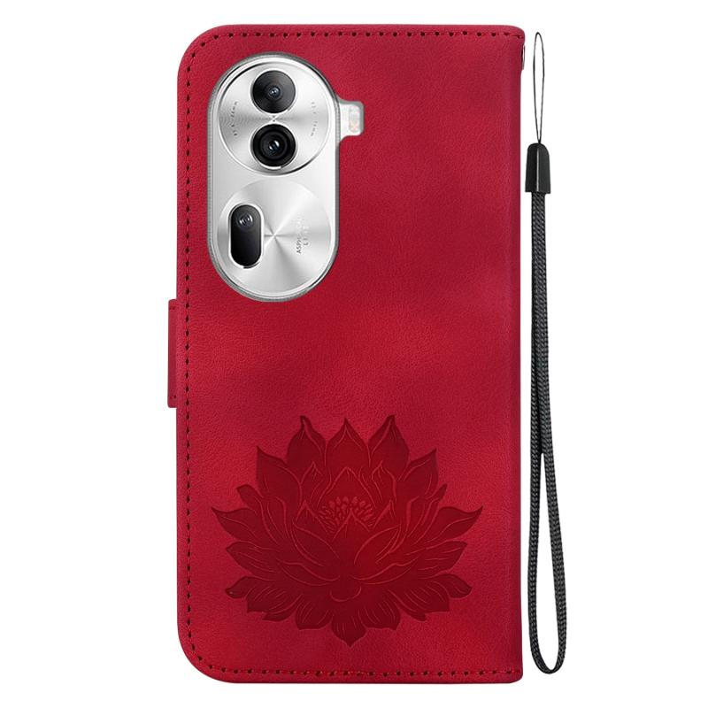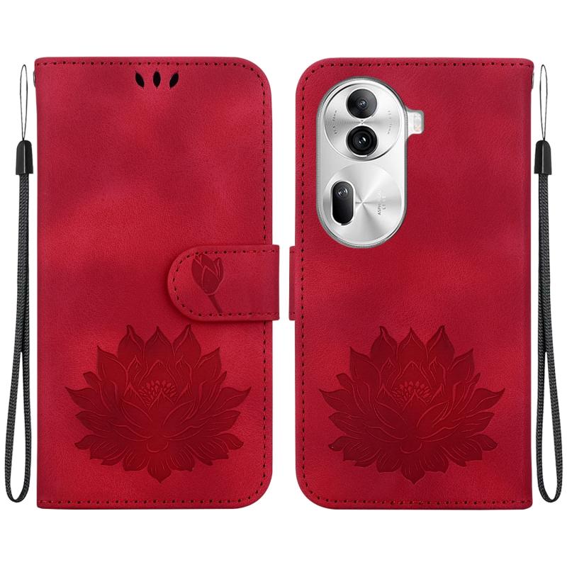 For OPPO Reno11 Pro 5G Global Lotus Embossed Leather Phone Case(Red)