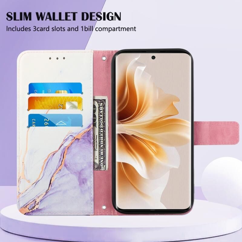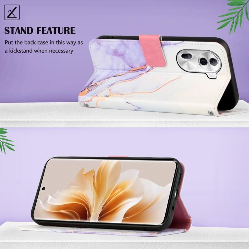 Θήκη τηλεφώνου από δέρμα με σχέδιο μάρμαρου για OPPO Reno11 Pro 5G Global PT003 (Λευκό Μωβ)