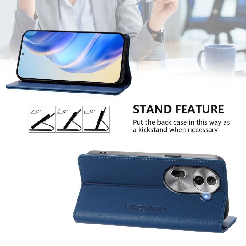 Θήκη τηλεφώνου από δέρμα με μαγνητική απορρόφηση και προστασία RFID για OPPO Reno11 Pro 5G Global RC01, διπλού τύπου (Μέντας Πράσινο)