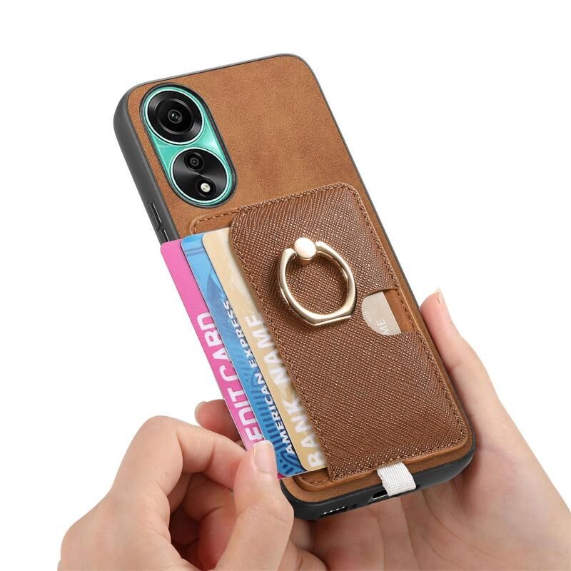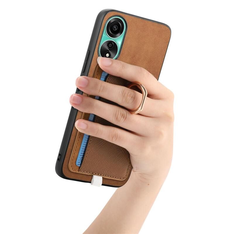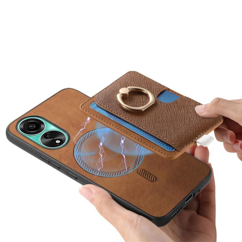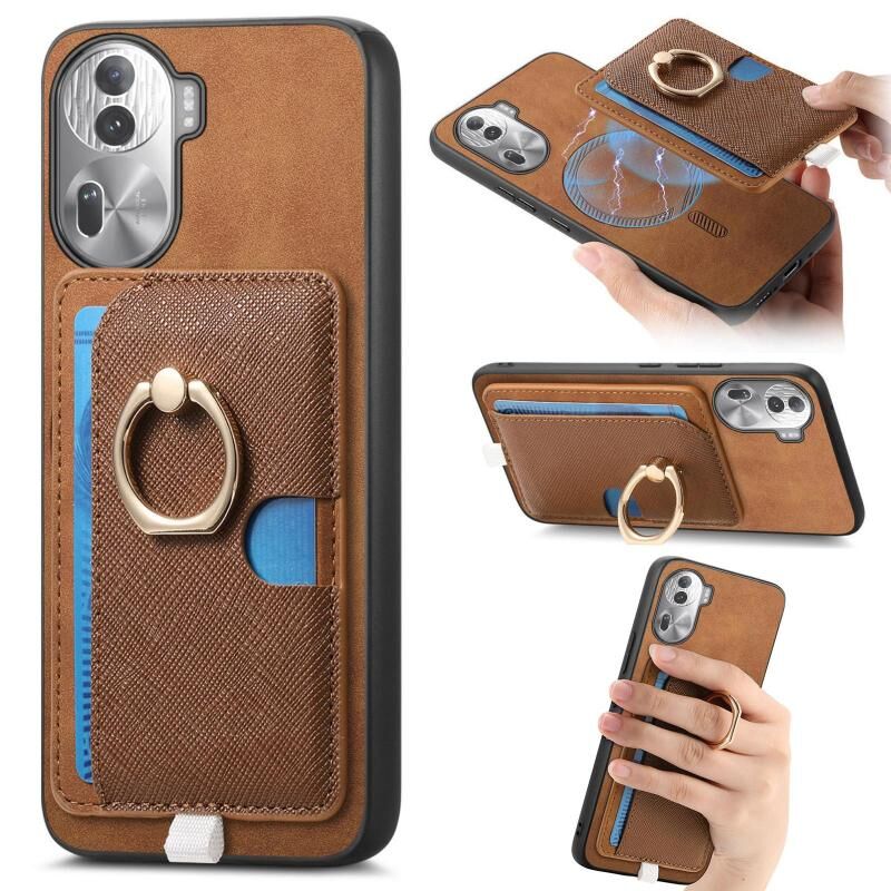Θήκη τηλεφώνου MagSafe για OPPO Reno11 Pro 5G Global, Ρετρό Δερμάτινη με Ενσωματωμένη Κάρτα και Δαχτυλίδι (Καφέ)