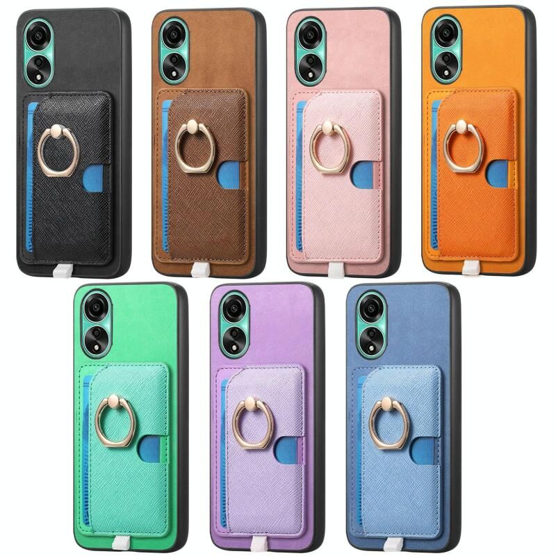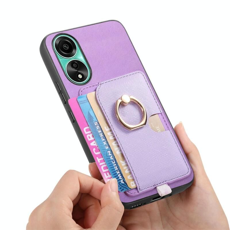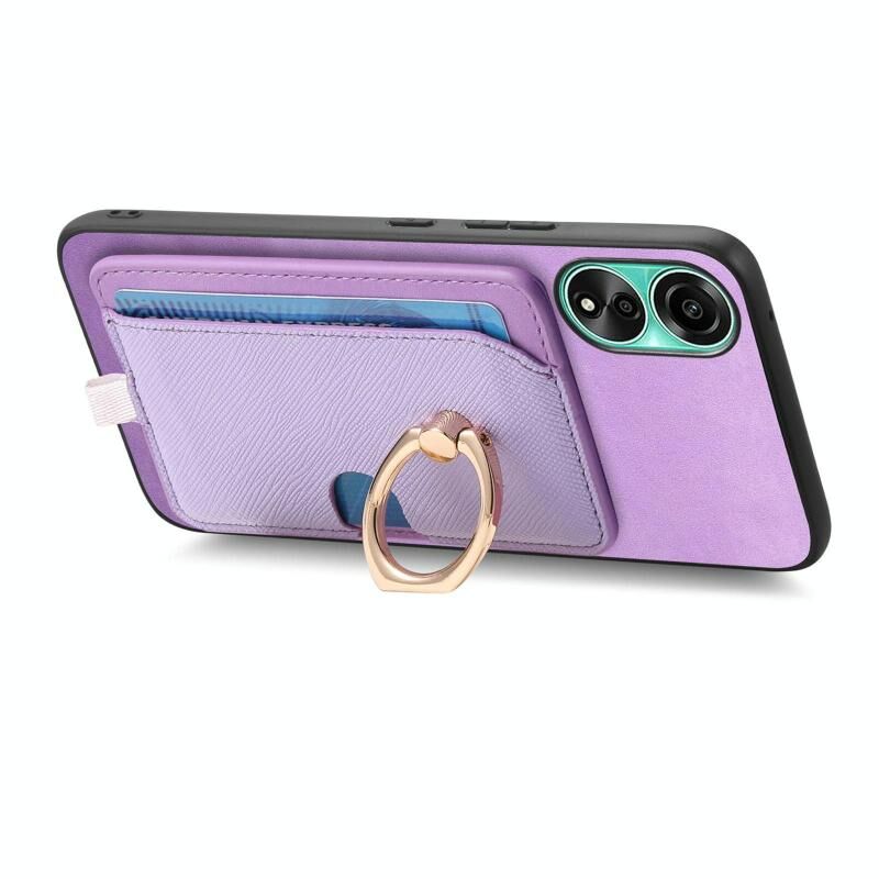 Θήκη τηλεφώνου MagSafe για OPPO Reno11 Pro 5G Global, Ρετρό Δερμάτινη με Ενσωματωμένη Κάρτα και Δαχτυλίδι (Μωβ)
