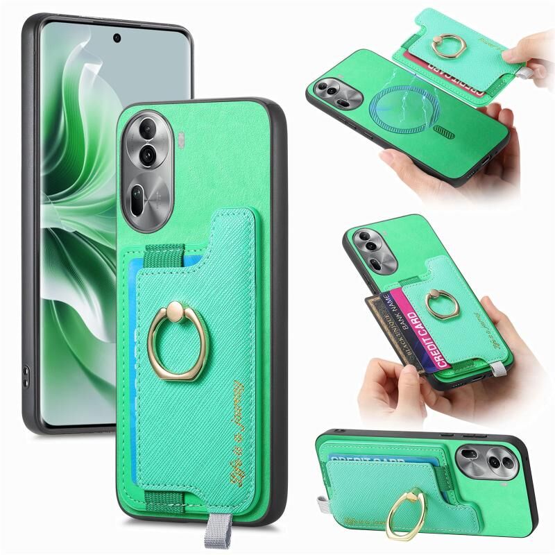 Θήκη τηλεφώνου για OPPO Reno11 Pro 5G Global Retro Magsafe Cross Δερμάτινος Κρίκος Κάρτας (Κίτρινο)