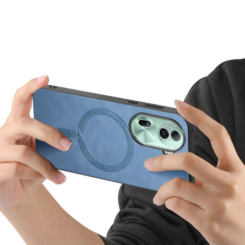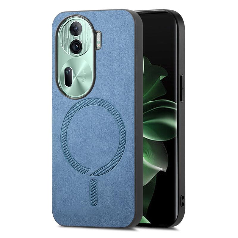 For OPPO Reno11 Pro 5G Global Retro Magsafe Magnetic PU Back Cover Phone Case(Blue)