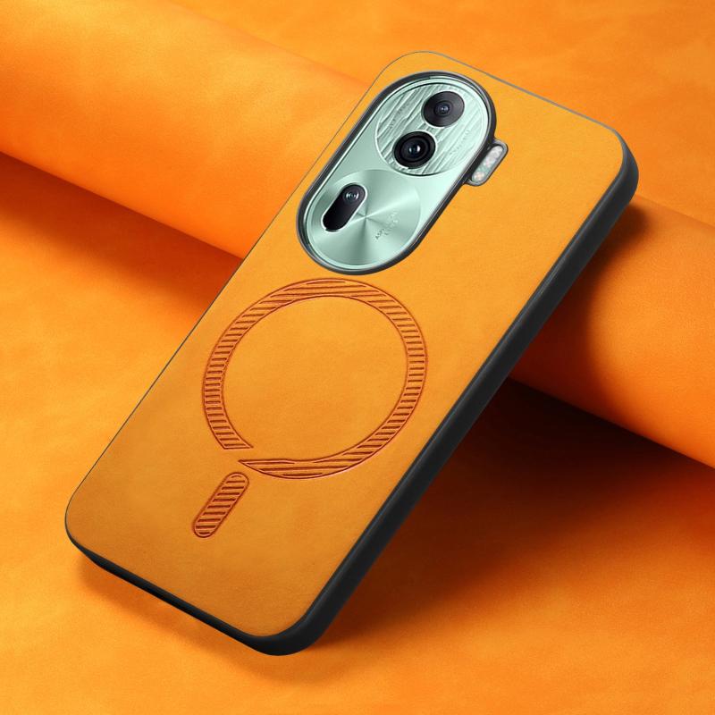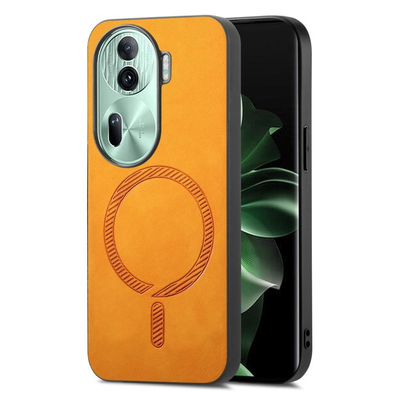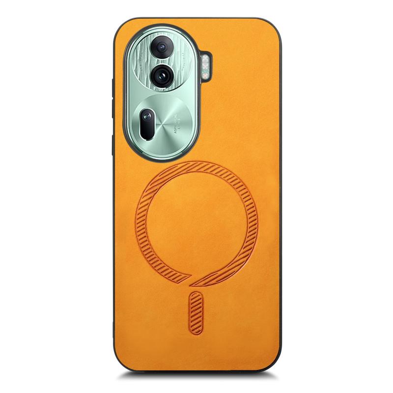 For OPPO Reno11 Pro 5G Global Retro Magsafe Magnetic PU Back Cover Phone Case(Yellow)