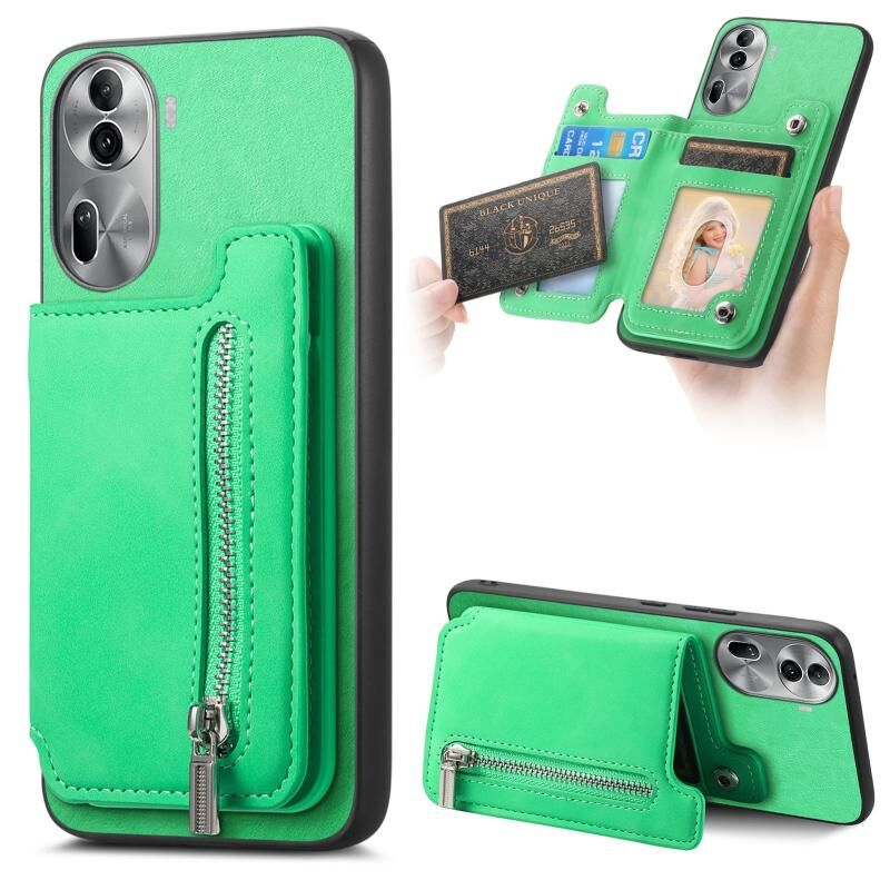 Θήκη κινητού τηλεφώνου για OPPO Reno11 Pro 5G Global Retro MagSafe με φερμουάρ και θήκη για κάρτες (Κίτρινο)