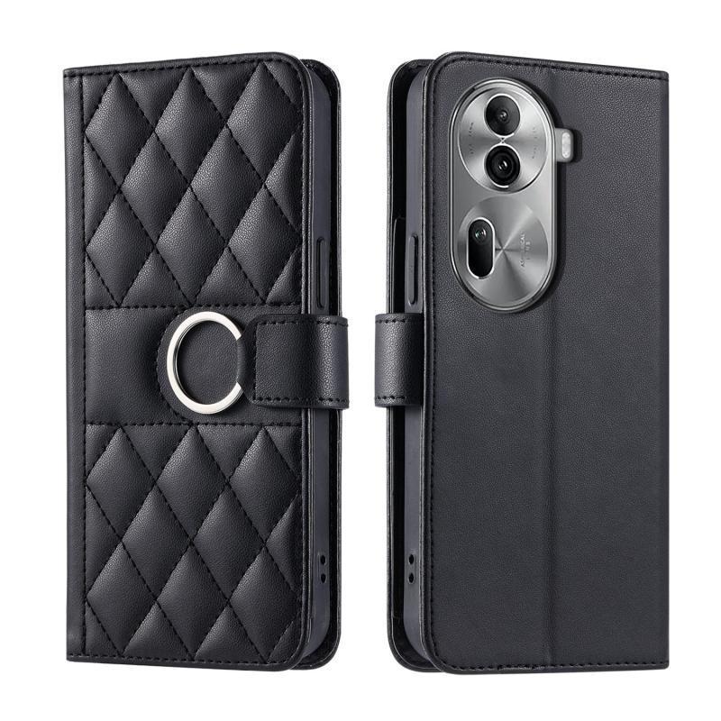 For OPPO Reno11 Pro 5G Global Ring Buckle Rhombic Leather Phone Case(Black)