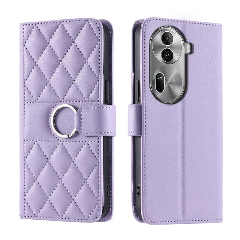 For OPPO Reno11 Pro 5G Global Ring Buckle Rhombic Leather Phone Case(Purple)