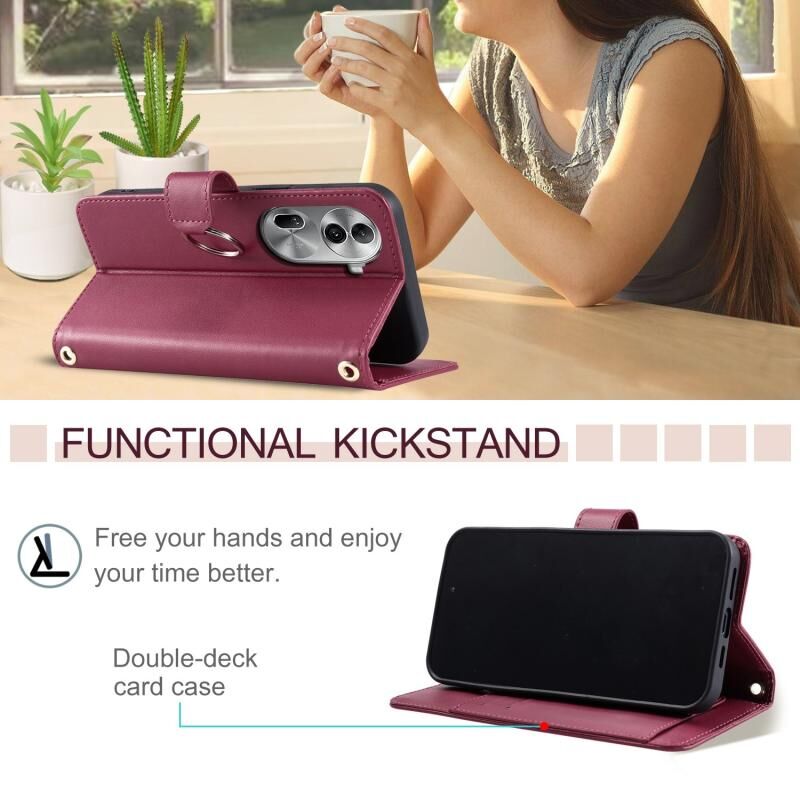 Θήκη τηλεφώνου από δέρμα με γεωμετρικό σχέδιο και μεταλλικό δακτύλιο για OPPO Reno11 Pro 5G (Κόκκινο)