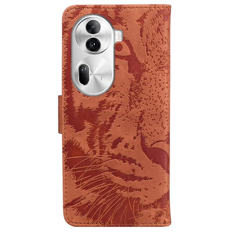 Θήκη τηλεφώνου από δέρμα με σχέδιο ανάγλυφου τίγρη για OPPO Reno11 Pro 5G Global (Μαύρο)