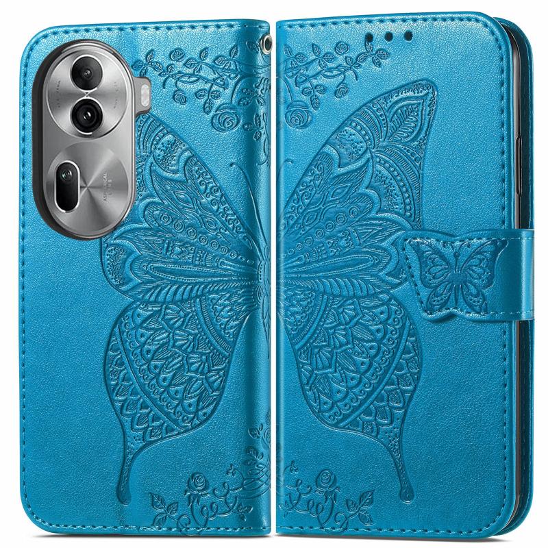 For OPPO Reno11 Pro EU Butterfly Love Flower Embossed Leather Phone Case(Blue)