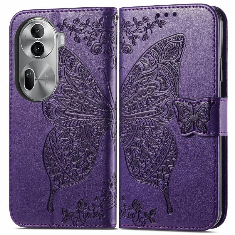 For OPPO Reno11 Pro EU Butterfly Love Flower Embossed Leather Phone Case(Dark Purple)