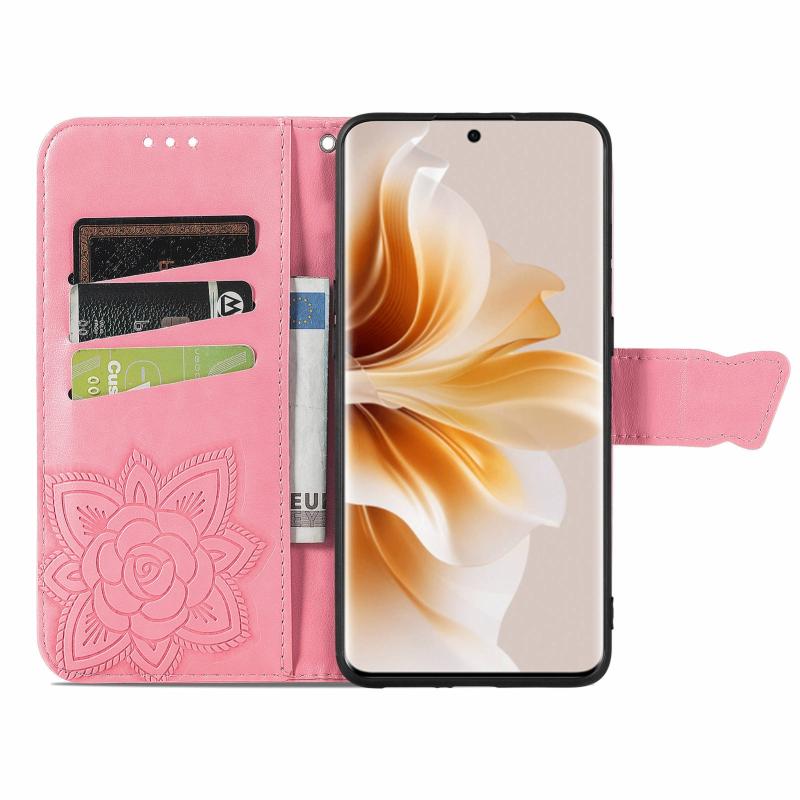 For OPPO Reno11 Pro EU Butterfly Love Flower Embossed Leather Phone Case(Pink)