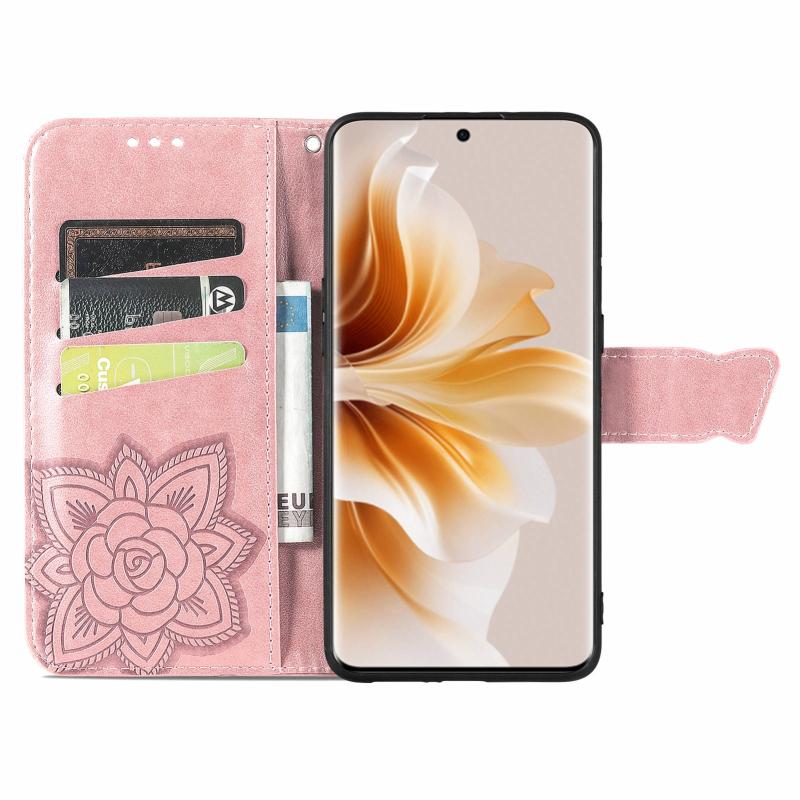 For OPPO Reno11 Pro EU Butterfly Love Flower Embossed Leather Phone Case(Rose Gold)