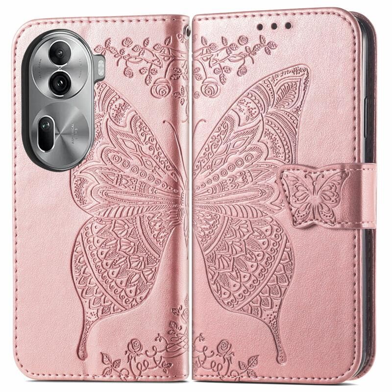 Θήκη τηλεφώνου από δέρμα με ανάγλυφο σχέδιο πεταλούδας και λουλουδιών για OPPO Reno11 Pro EU (Σκούρο Μωβ)