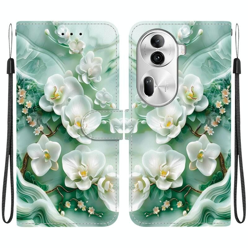 Θήκη τηλεφώνου OPPO Reno11 Pro Global Crystal Texture Colored Drawing Leather (Λουλούδια νεφρίτη)