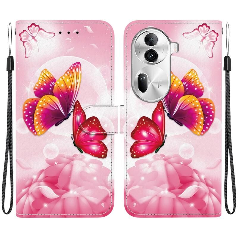 Θήκη τηλεφώνου OPPO Reno11 Pro Global Crystal Texture Colored Drawing Leather (Χρυσά Φτερά Πεταλούδας)