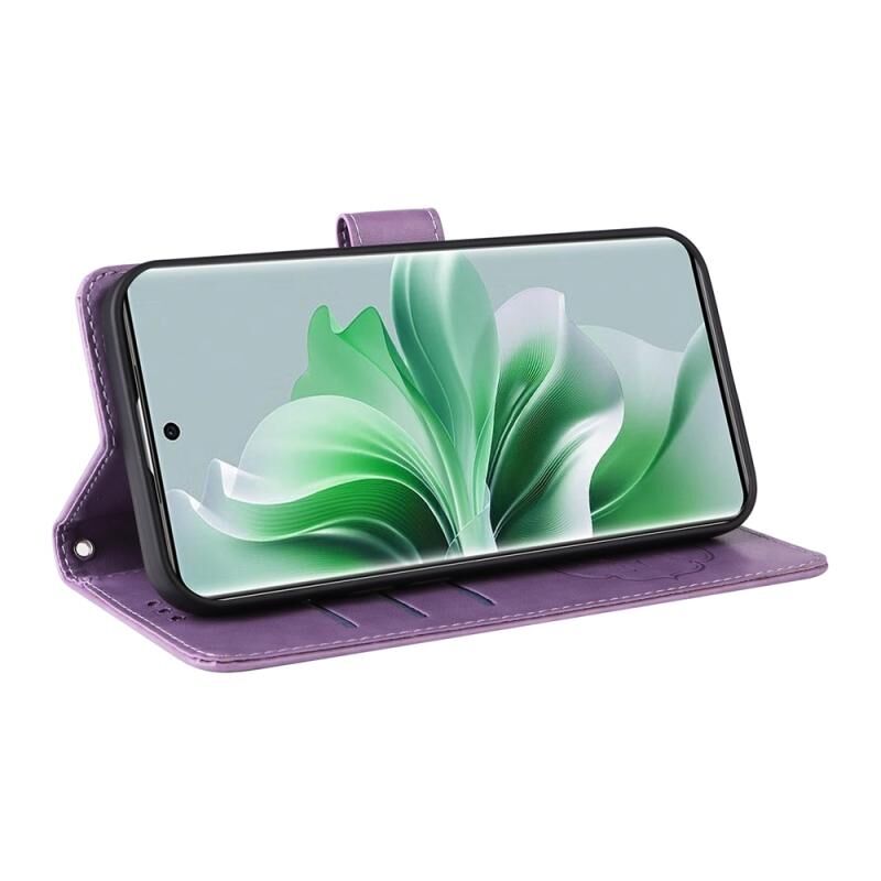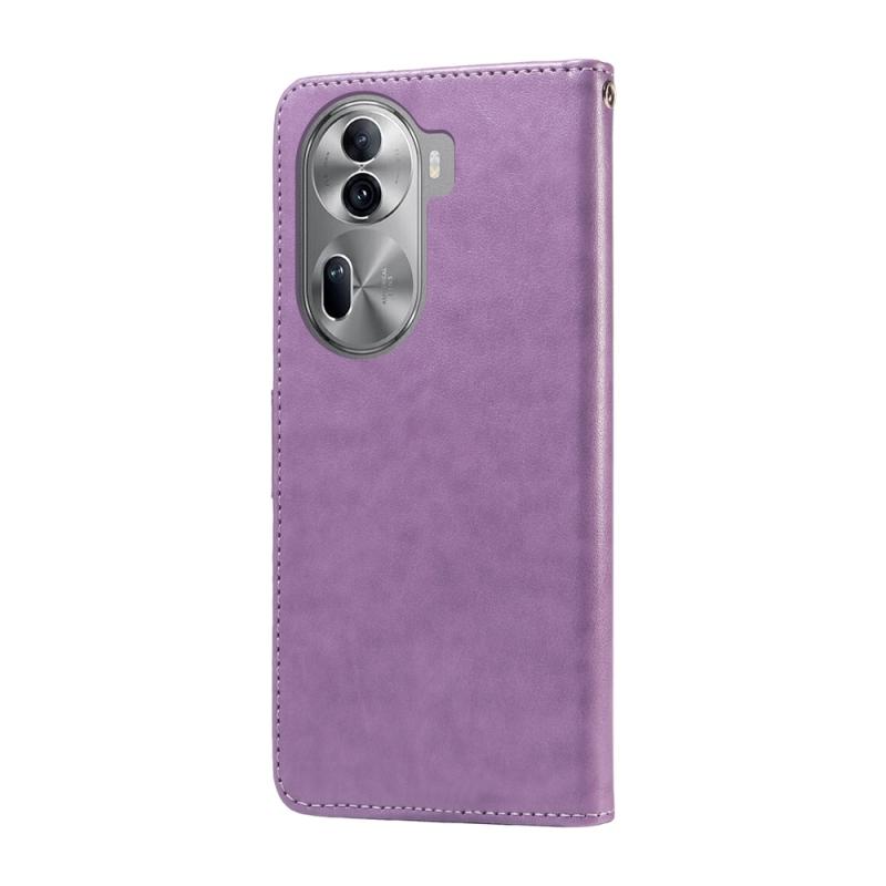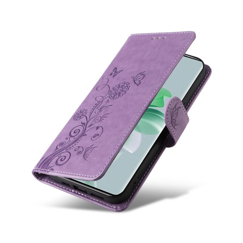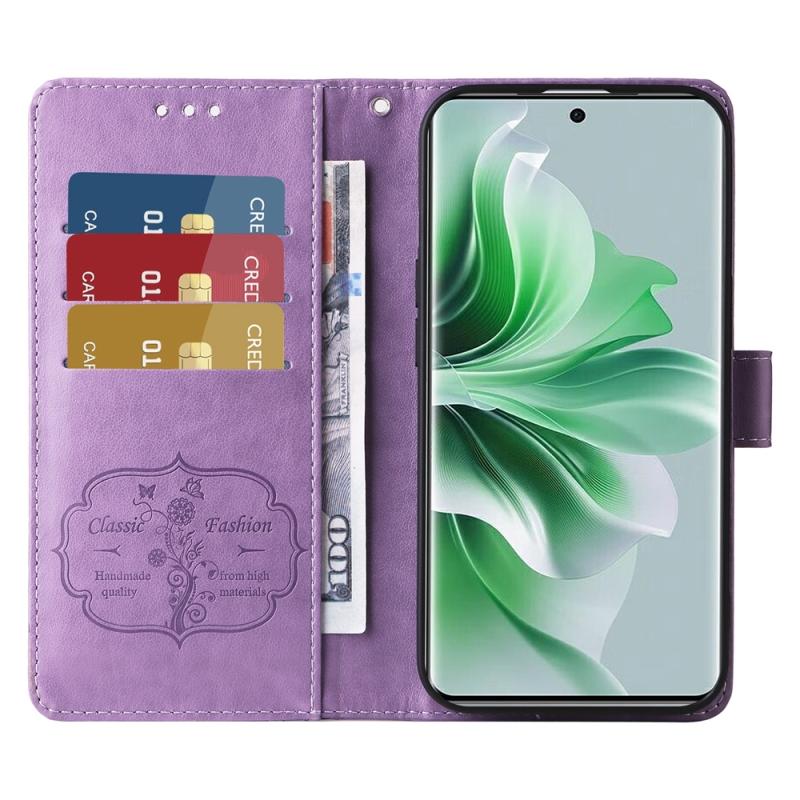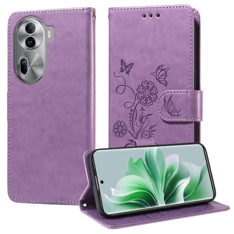 Θήκη τηλεφώνου από δέρμα με ανάγλυφα λουλούδια και πεταλούδες για OPPO Reno11 Pro Global (Μωβ)