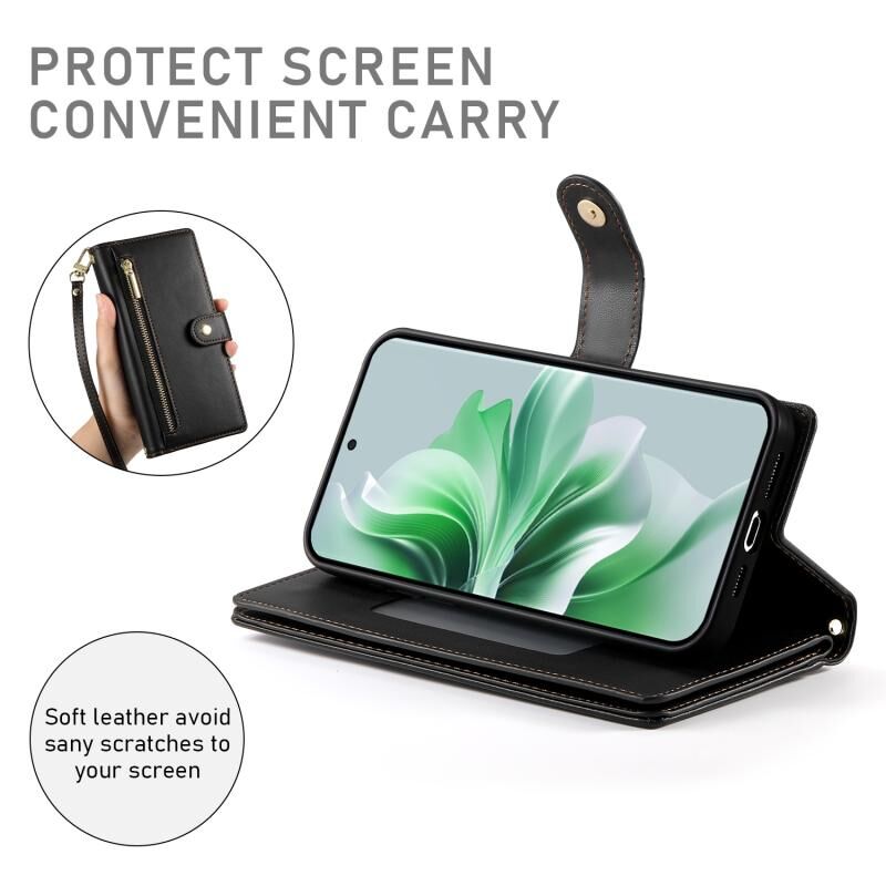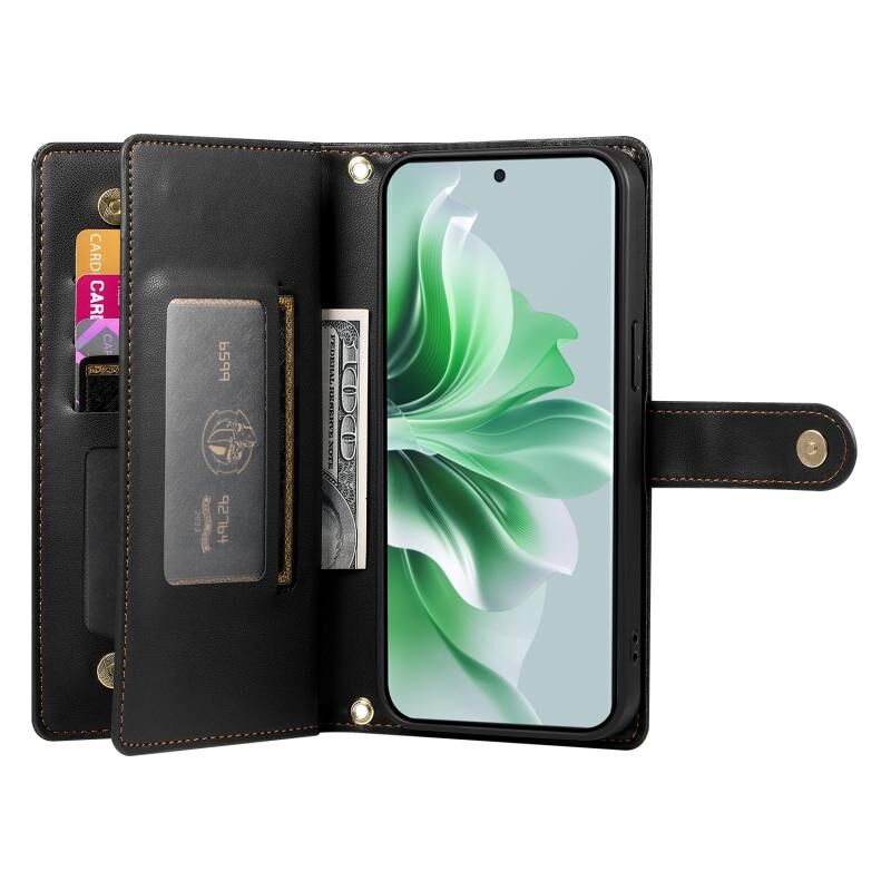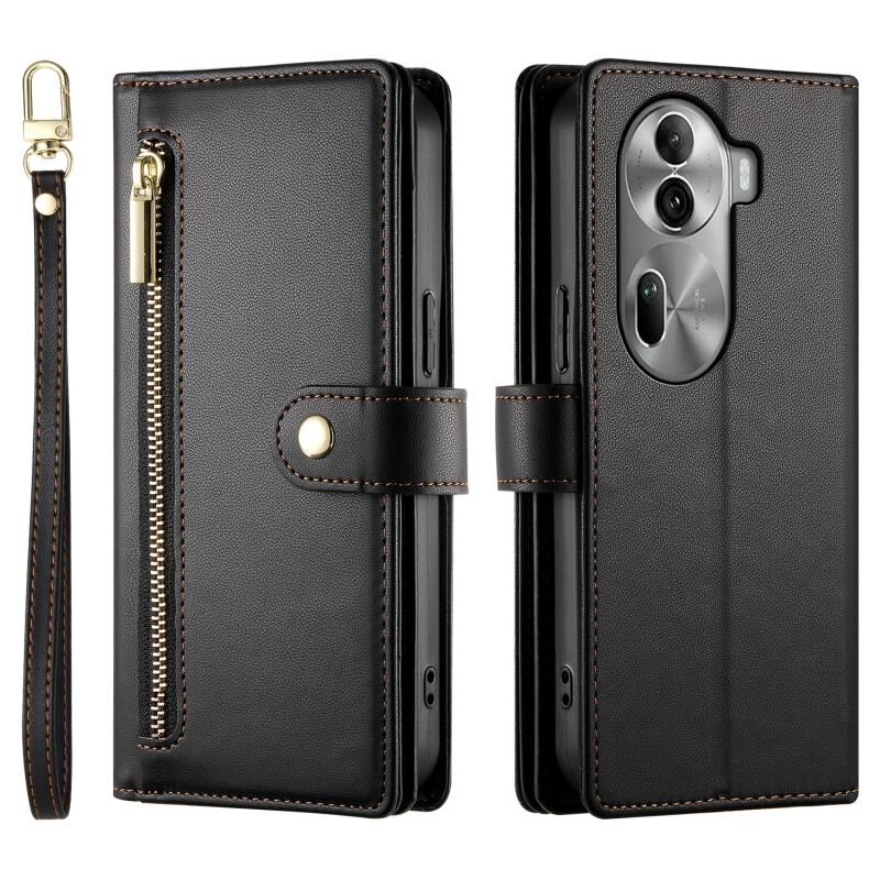 Για OPPO Reno11 Pro Global Nine Card-slot φερμουάρ πορτοφόλι τσάντα δερμάτινη θήκη τηλεφώνου (Μαύρο)