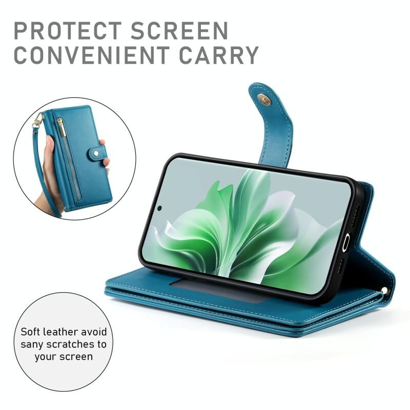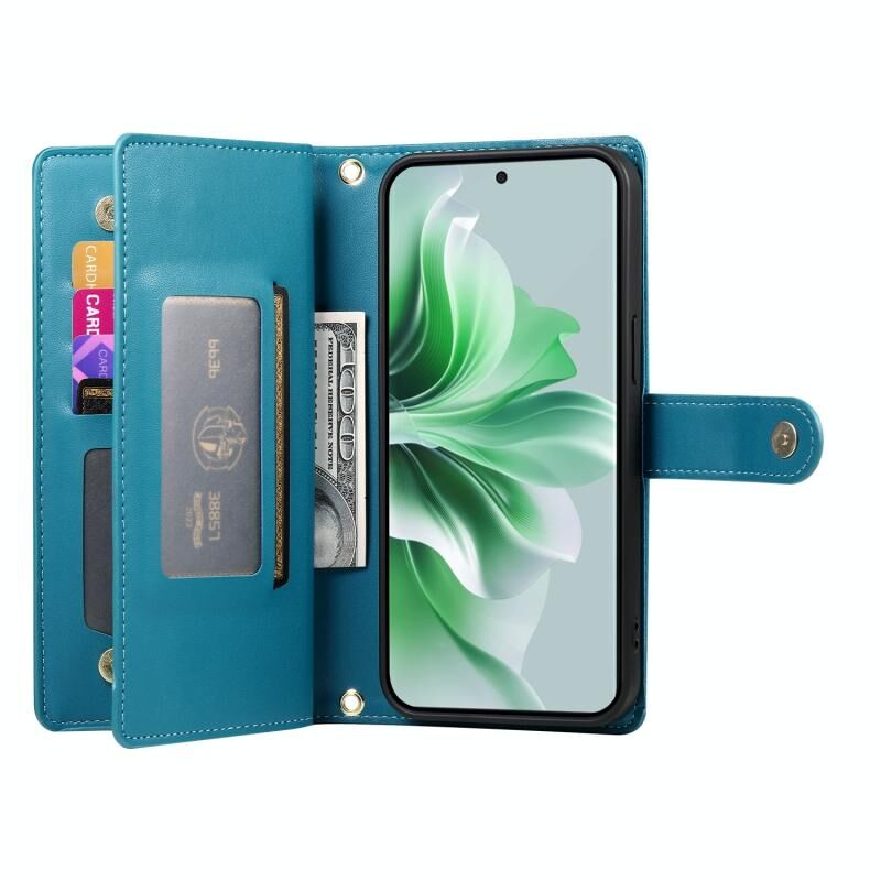 Για OPPO Reno11 Pro Global Nine Card-slot φερμουάρ πορτοφόλι τσάντα δερμάτινη θήκη τηλεφώνου (Μπλε)