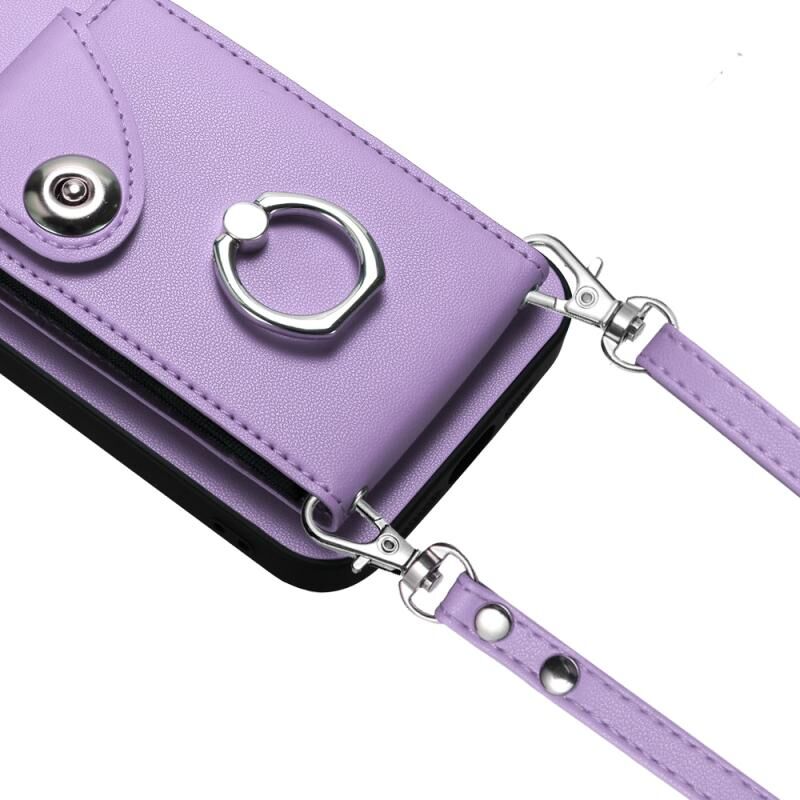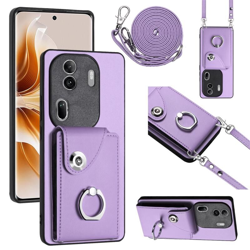 Για OPPO Reno11 Pro Παγκόσμια Οργάνων κάρτα τσάντα δαχτυλίδι κάτοχος υπόθεση τηλεφώνου με μακρύ κορδόνι (Μωβ)