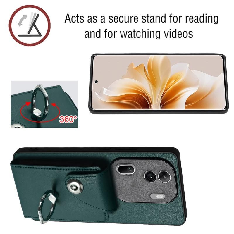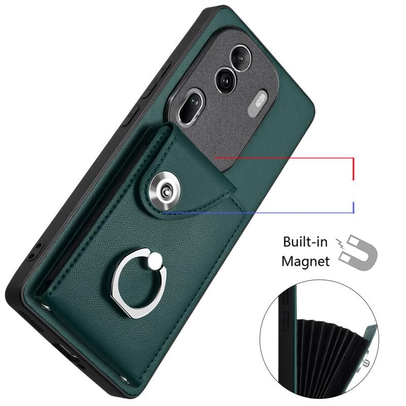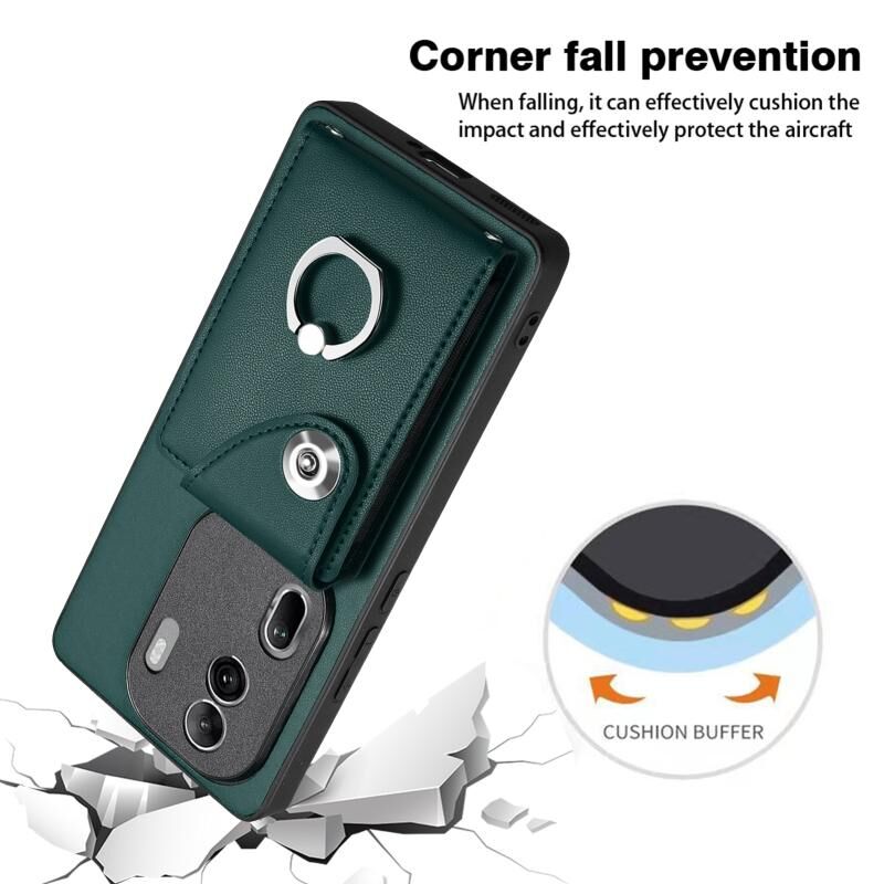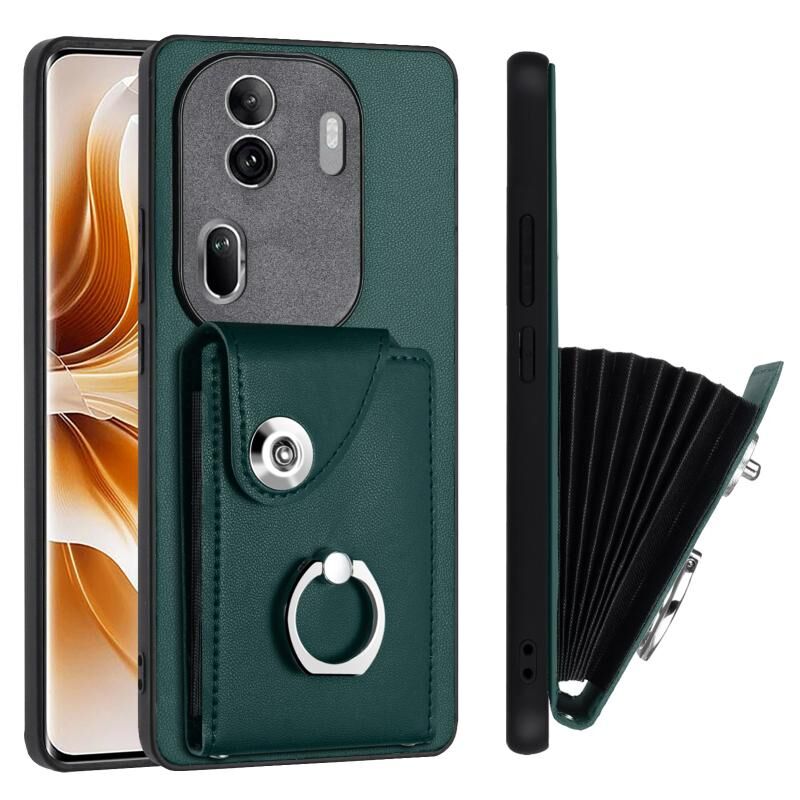 Για OPPO Reno11 Pro Παγκόσμια Οργάνων κάρτα τσάντα δαχτυλίδι κάτοχος PU τηλέφωνο υπόθεση (πράσινο)
