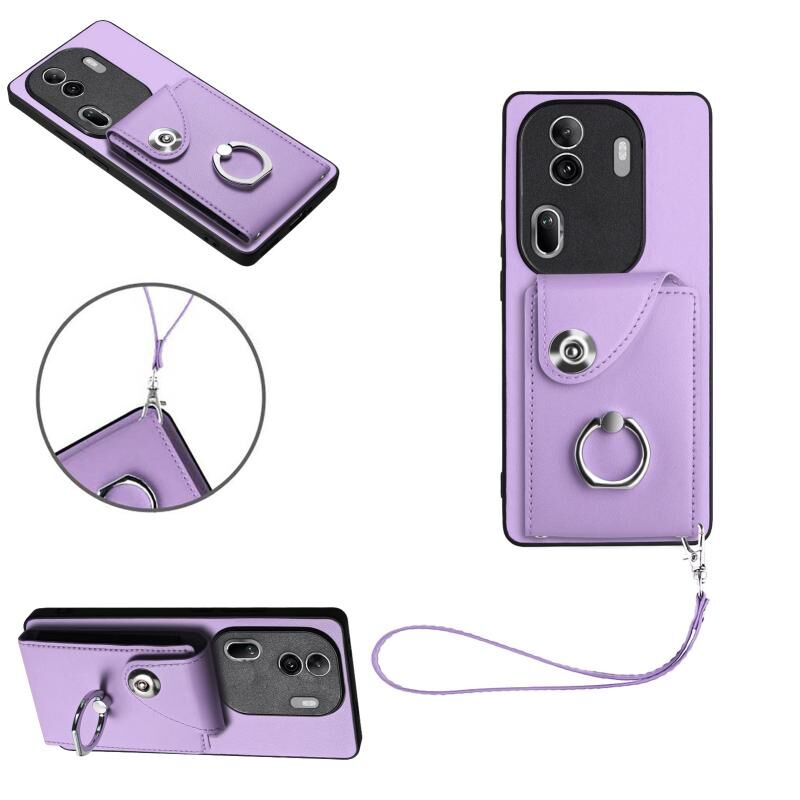 Για OPPO Reno11 Pro Global Organ Card Bag Ring κάτοχος PU τηλέφωνο υπόθεση με κορδόνι (Μωβ)