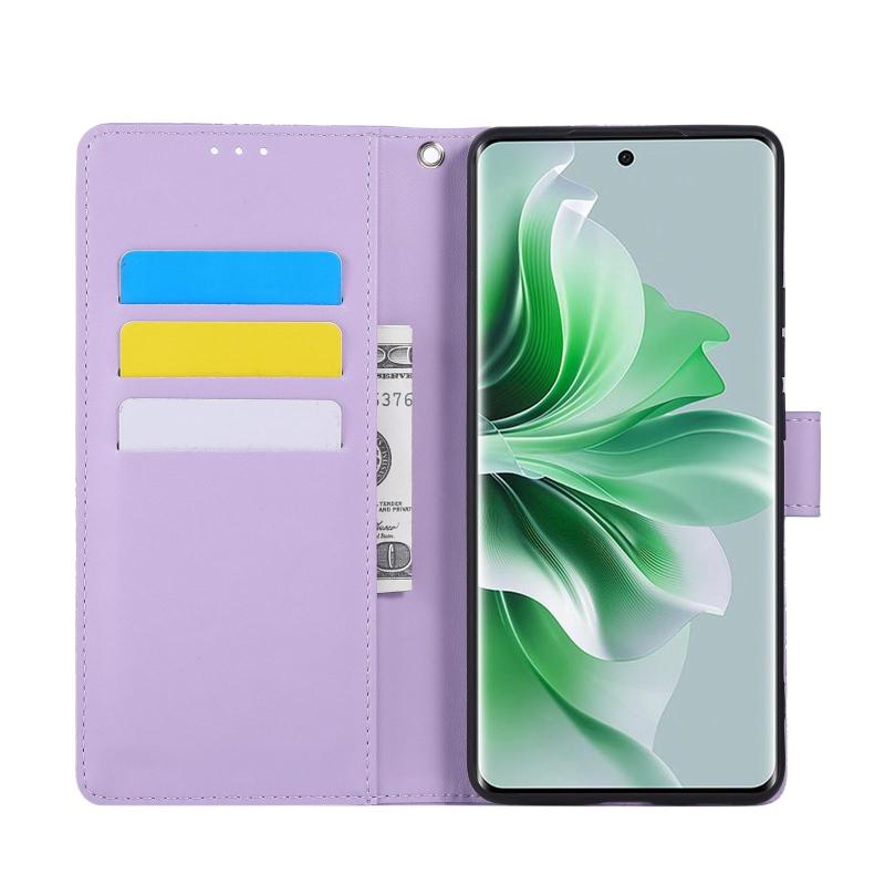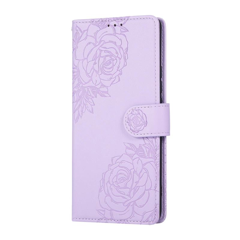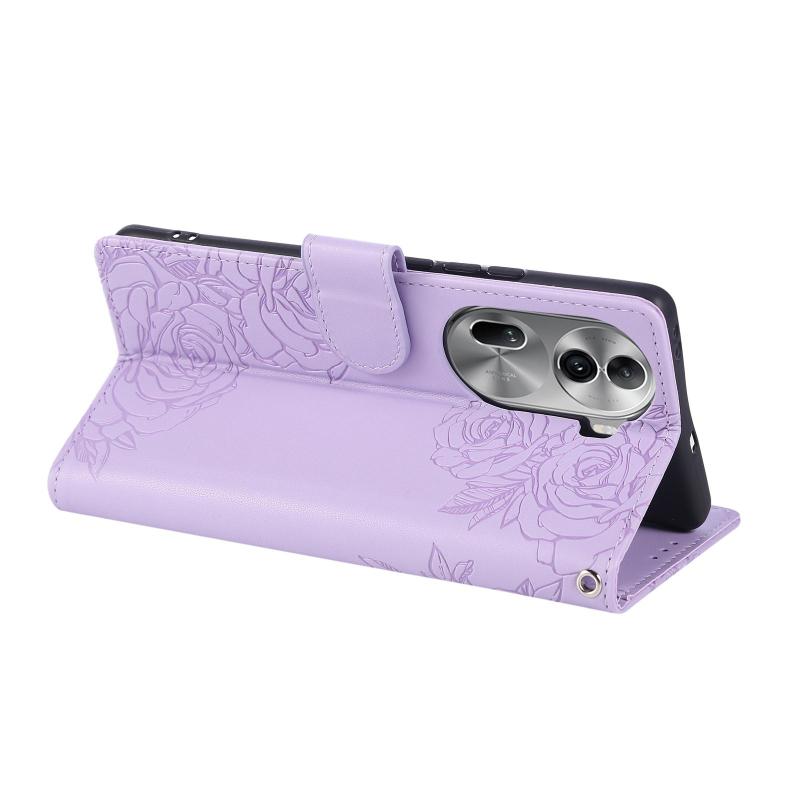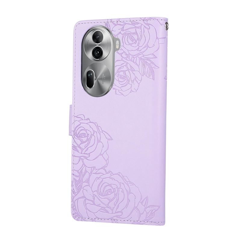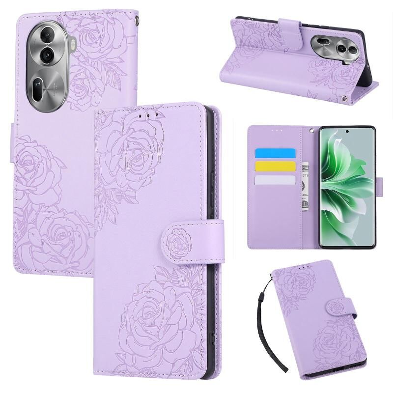 For OPPO Reno11 Pro Global Rose Flower Embossed 3-Card Slots Leather Phone Case(Purple)