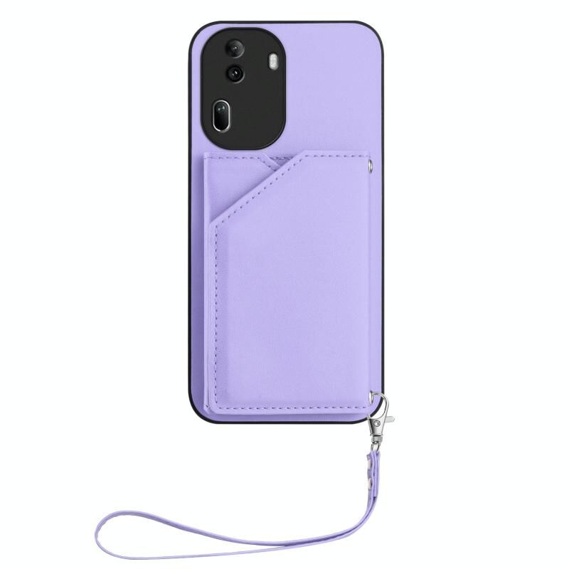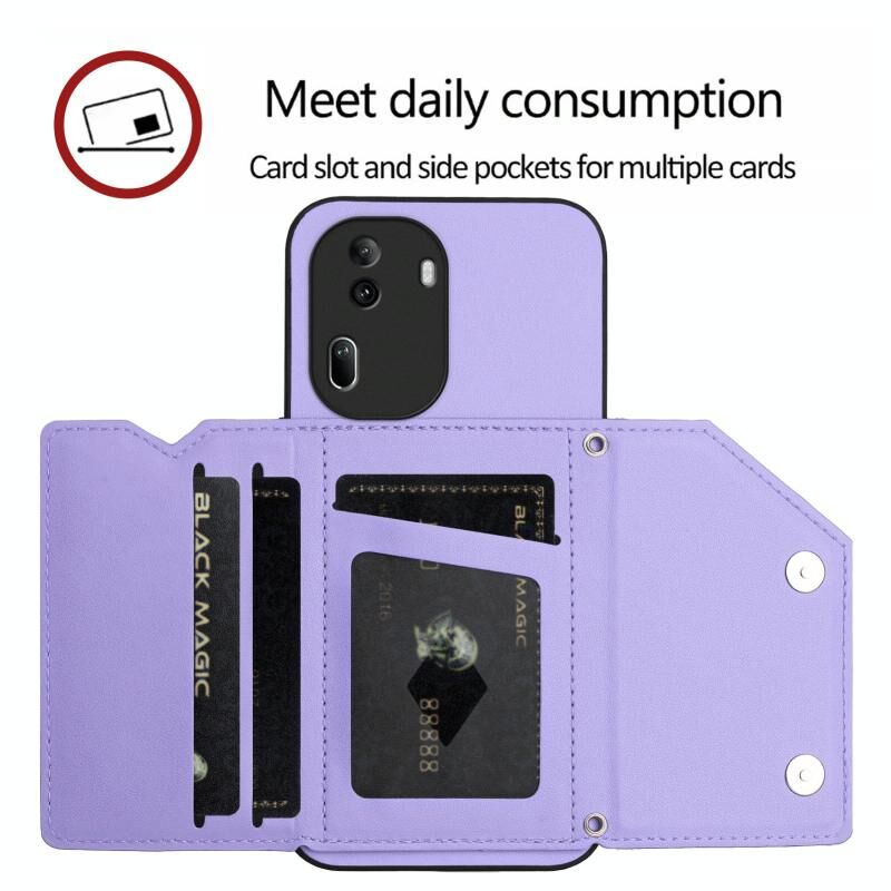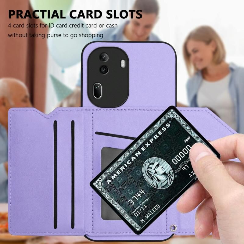 Για OPPO Reno11 Pro Global Skin Feel Τέσσερις υποδοχές καρτών τηλέφωνο υπόθεση με λουράκι καρπού (Μωβ)