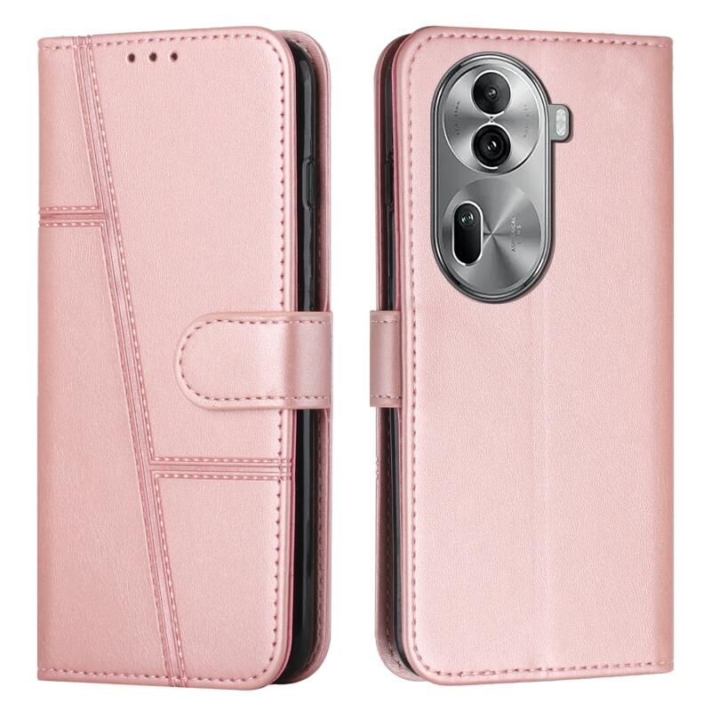 Θήκη τηλεφώνου από δέρμα με αγκράφα και υφή μοσχαριού για OPPO Reno11 Pro Global (Μαύρο)