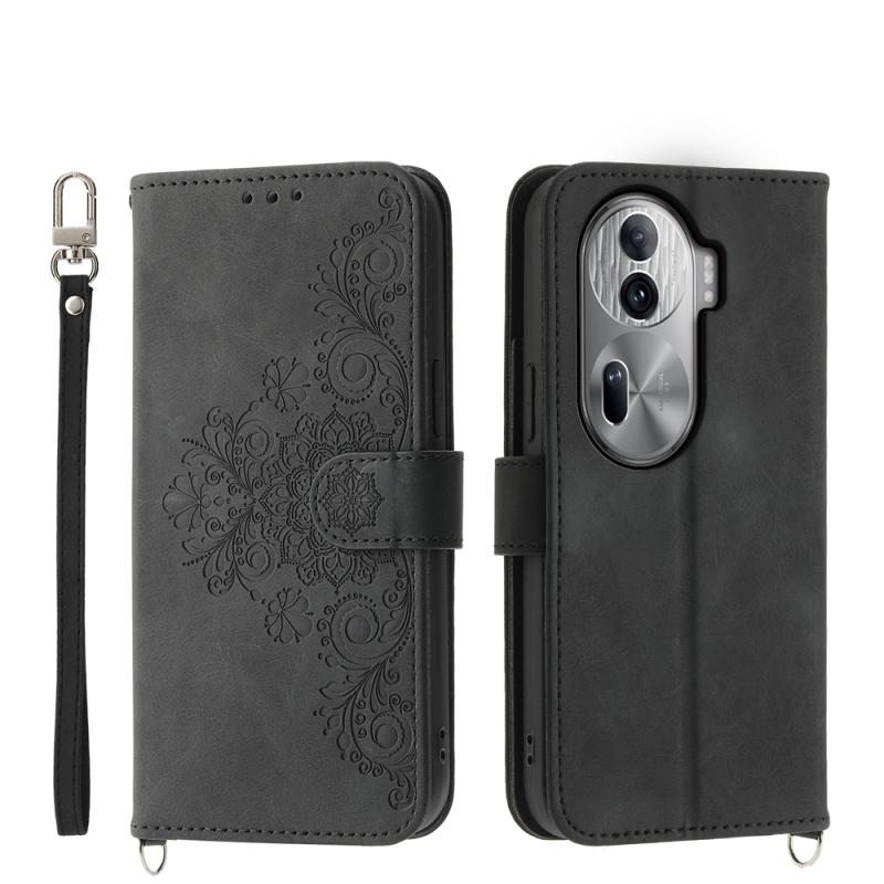 For OPPO Reno11 Pro Skin Feel Flowers Embossed Wallet Leather Phone Case(Black)