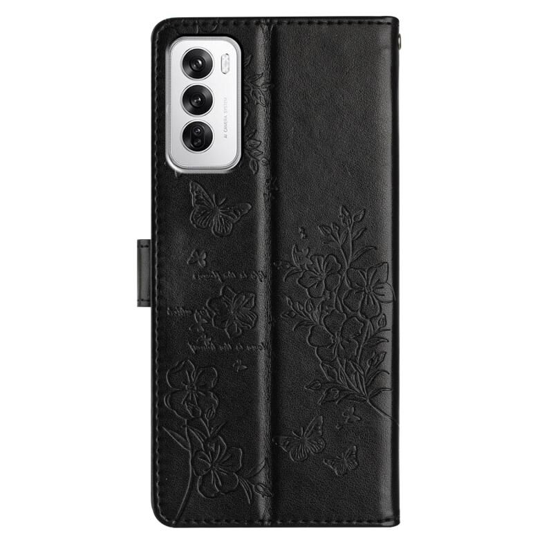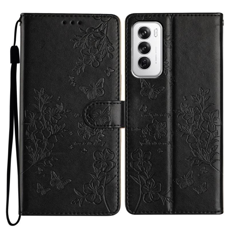 For OPPO Reno12 5G Global Butterflies and Flowers Leather Phone Case(Black)